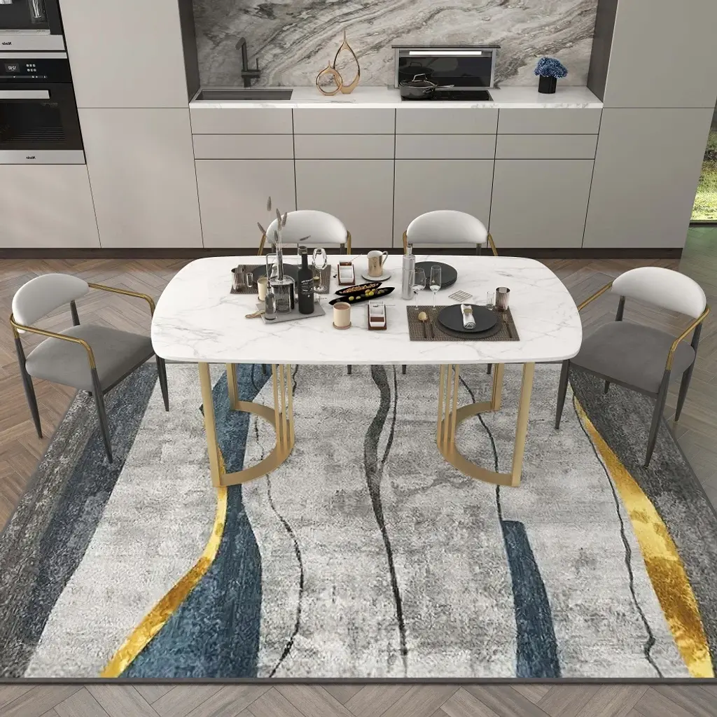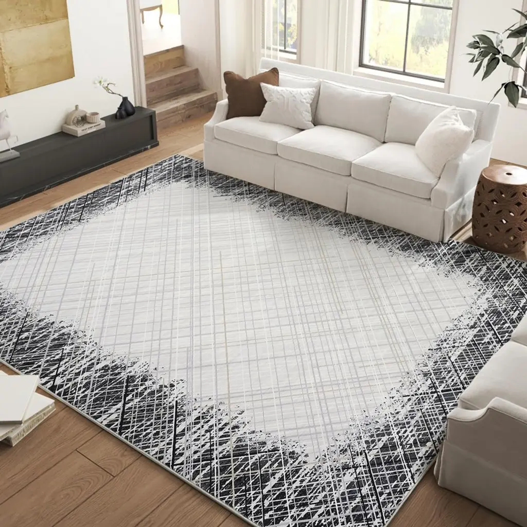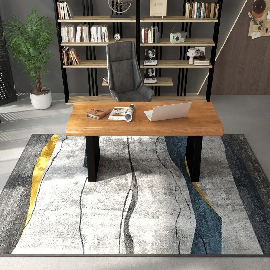 Modern Abstract Gray And Gold Rug Rectangle 5' X 7' Area Rug