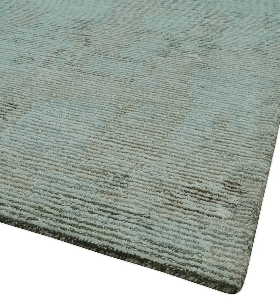 This modern abstract rug in shades of teal, olive, and ivory is hand-tufted with high-quality wool for a luxurious finish. Available in multiple sizes, this rug adds a touch of contemporary style to any room. Its soft texture provides comfort for your feet while its durable construction ensures long-lasting use. Hand-tufted with Wool Loop Made to Order in 30-45 Days Color: Teal, Olive and Ivory Perfect Fit for a modern room, kids, living or bedroom USERS GUIDE Avoid prolonged moisture Vacuum regularly and/or shake to remove dust Do not pull any loose threads. Use scissors to simply cut the ends Blot spills immediately with a white cloth. Harsh chemicals may damage or fade the rug Use rug protectors under heavy furniture