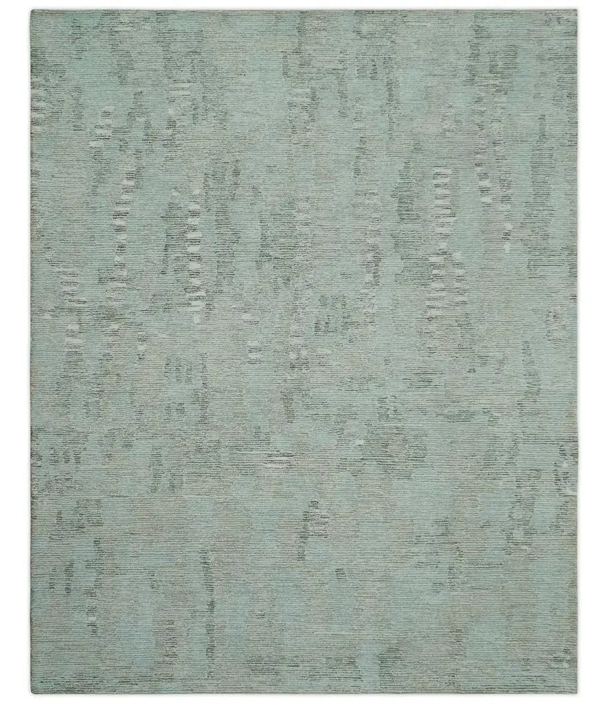 This modern abstract rug in shades of teal, olive, and ivory is hand-tufted with high-quality wool for a luxurious finish. Available in multiple sizes, this rug adds a touch of contemporary style to any room. Its soft texture provides comfort for your feet while its durable construction ensures long-lasting use. Hand-tufted with Wool Loop Made to Order in 30-45 Days Color: Teal, Olive and Ivory Perfect Fit for a modern room, kids, living or bedroom USERS GUIDE Avoid prolonged moisture Vacuum regularly and/or shake to remove dust Do not pull any loose threads. Use scissors to simply cut the ends Blot spills immediately with a white cloth. Harsh chemicals may damage or fade the rug Use rug protectors under heavy furniture