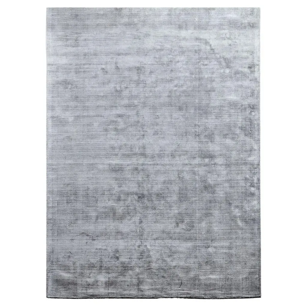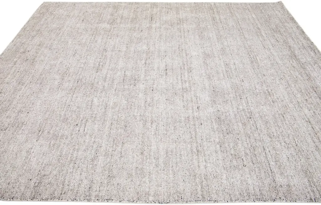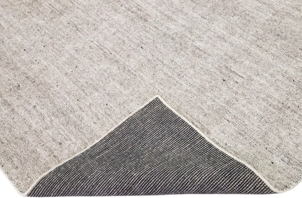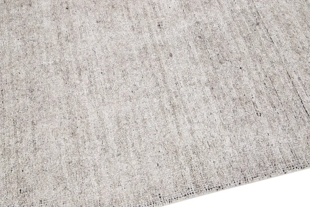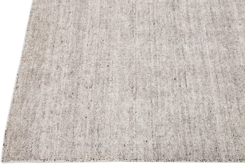 Modern Apadana's Groove Light Gray Handmade Bamboo/silk Rug With Solid Design