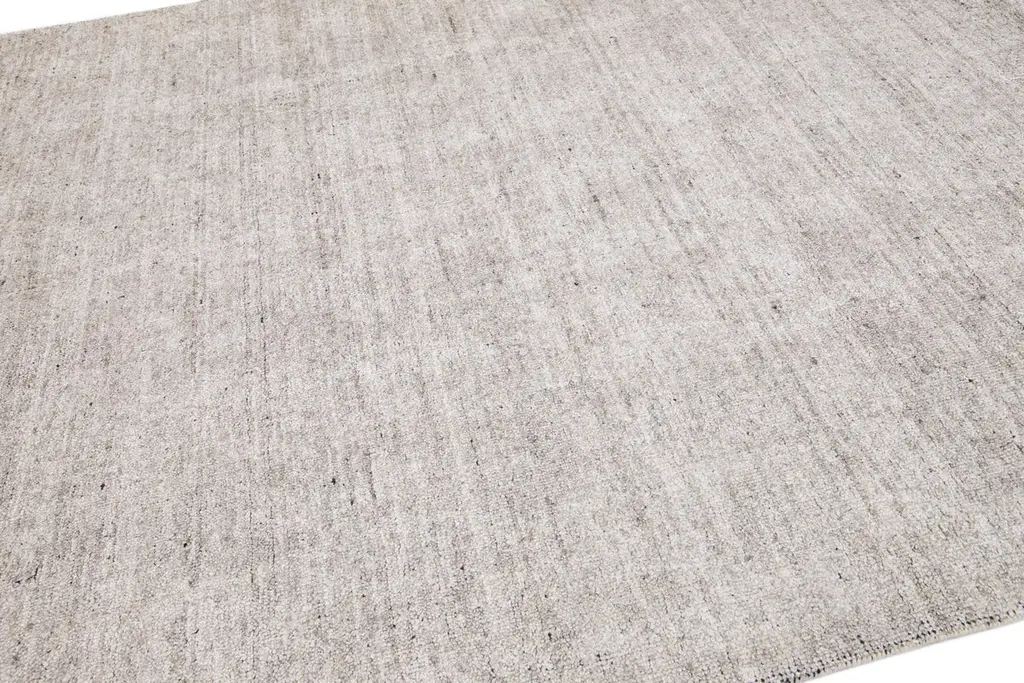 Beautiful Apadanas's handmade bamboo & silk Indian groove rug with a light gray color field. This groove collection rug has an all-over solid design.This rug measures: 8' x 10'.Custom colors and sizes are available upon request.