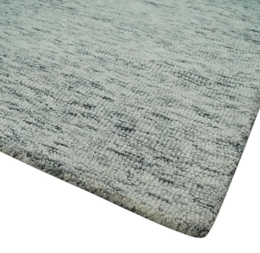Modern Beige And Charcoal Solid Shaded Hand Tufted Natural Wool Area Rug - 2.6x10