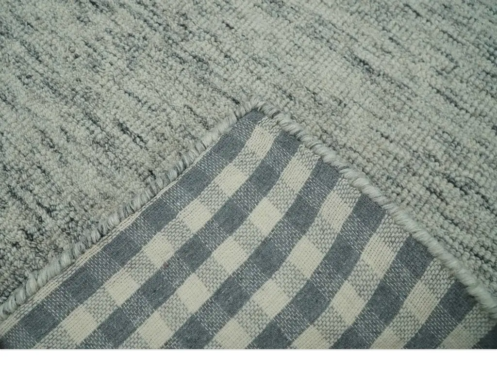 Modern Beige And Charcoal Solid Shaded Hand Tufted Natural Wool Area Rug - 2X3
