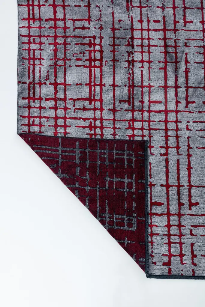 Modern Checkered Red Luxury Hand-Finished Area Rug