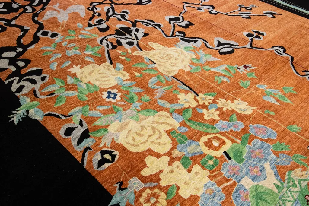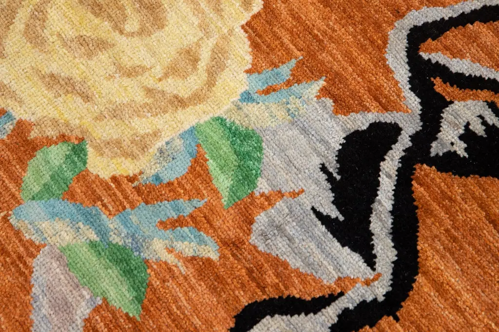 Modern Chinese Art Deco Style Brown Handmade Floral Designed Wool Rug