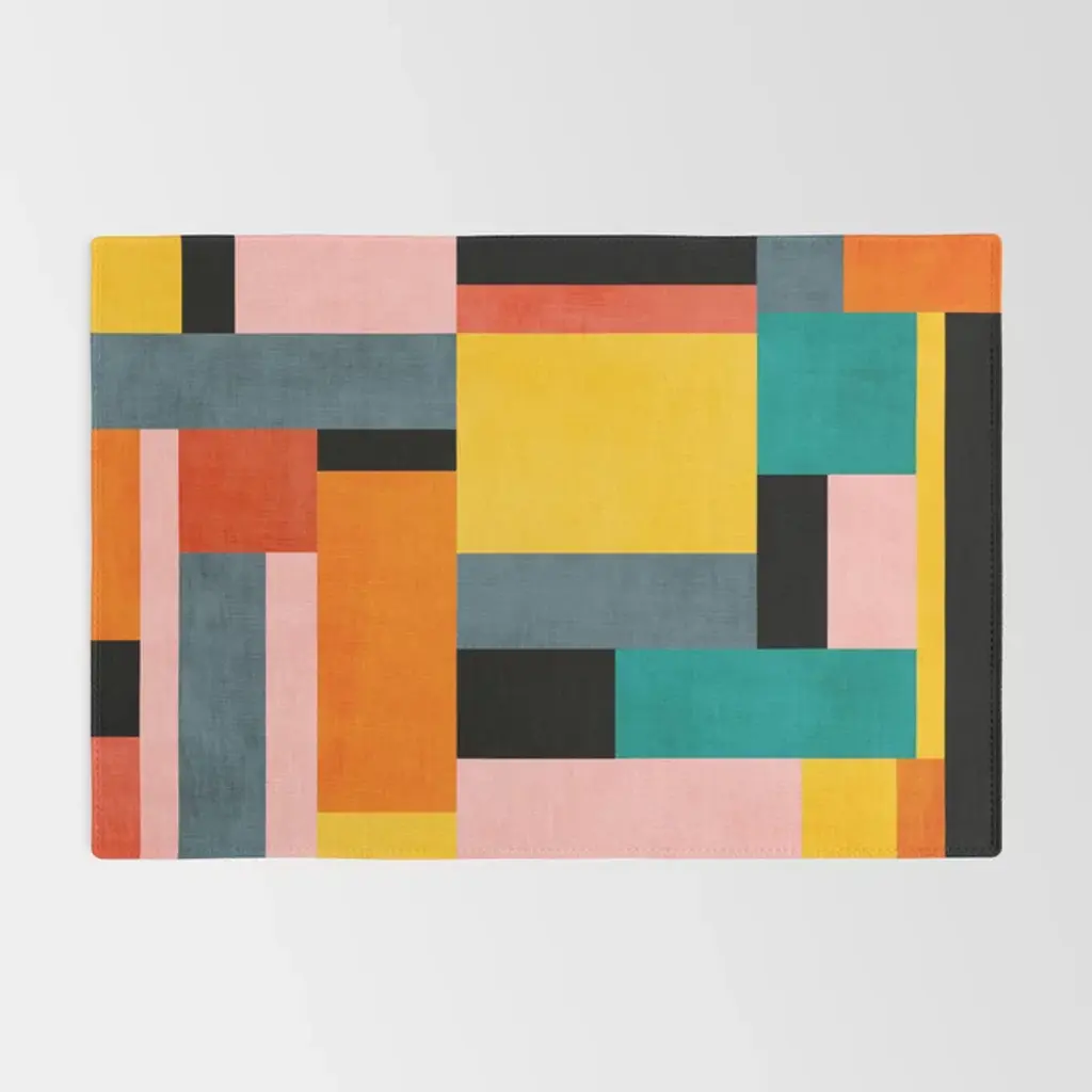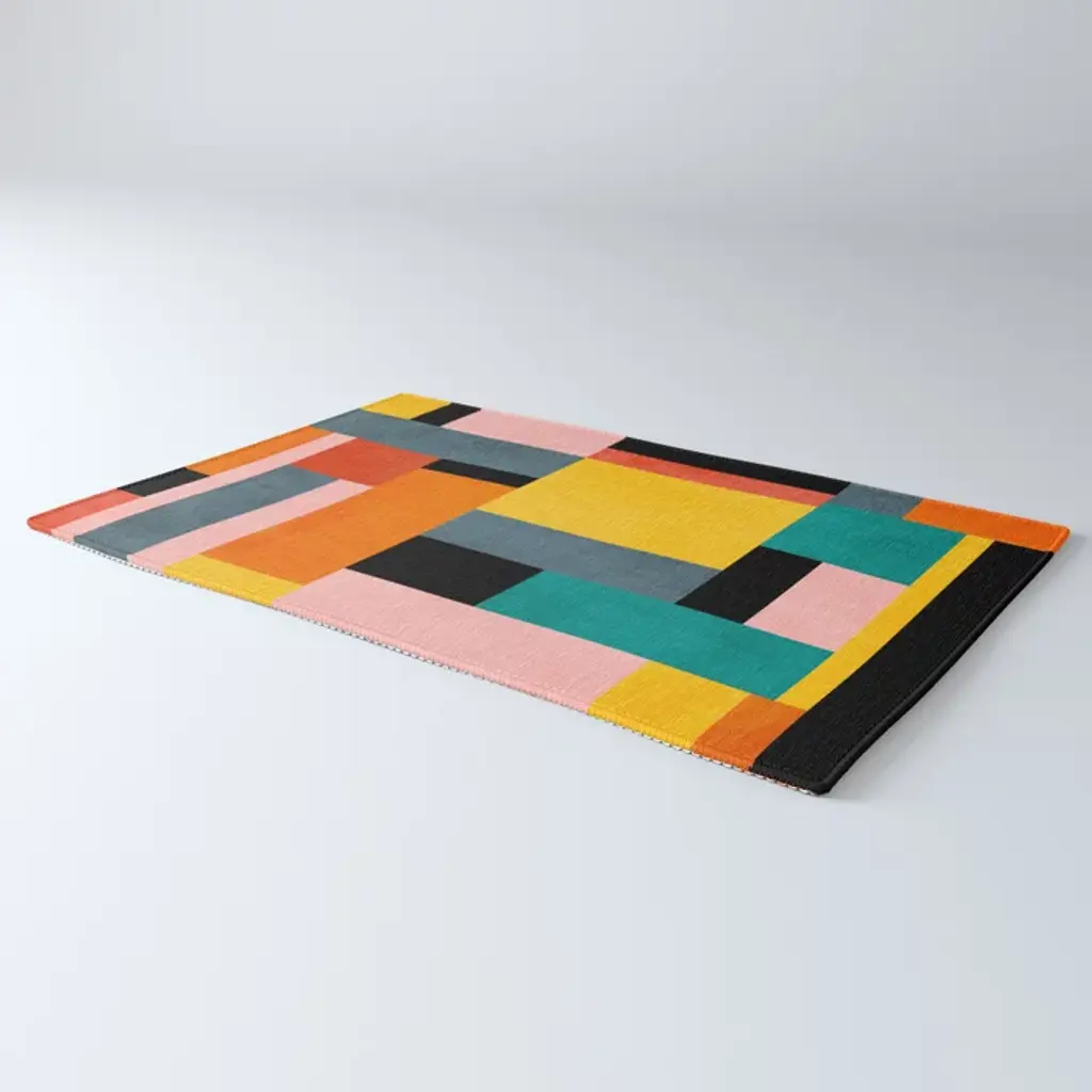 Modern Colorful Patchwork Vibrant Mcm Art Rug