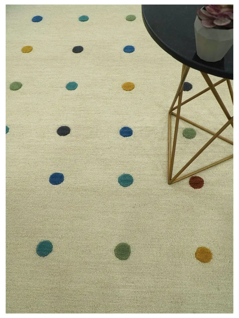 Modern Colorful Polka Dot Beige Hand Tufted Custom Made Wool Area Rug - 2.6x10