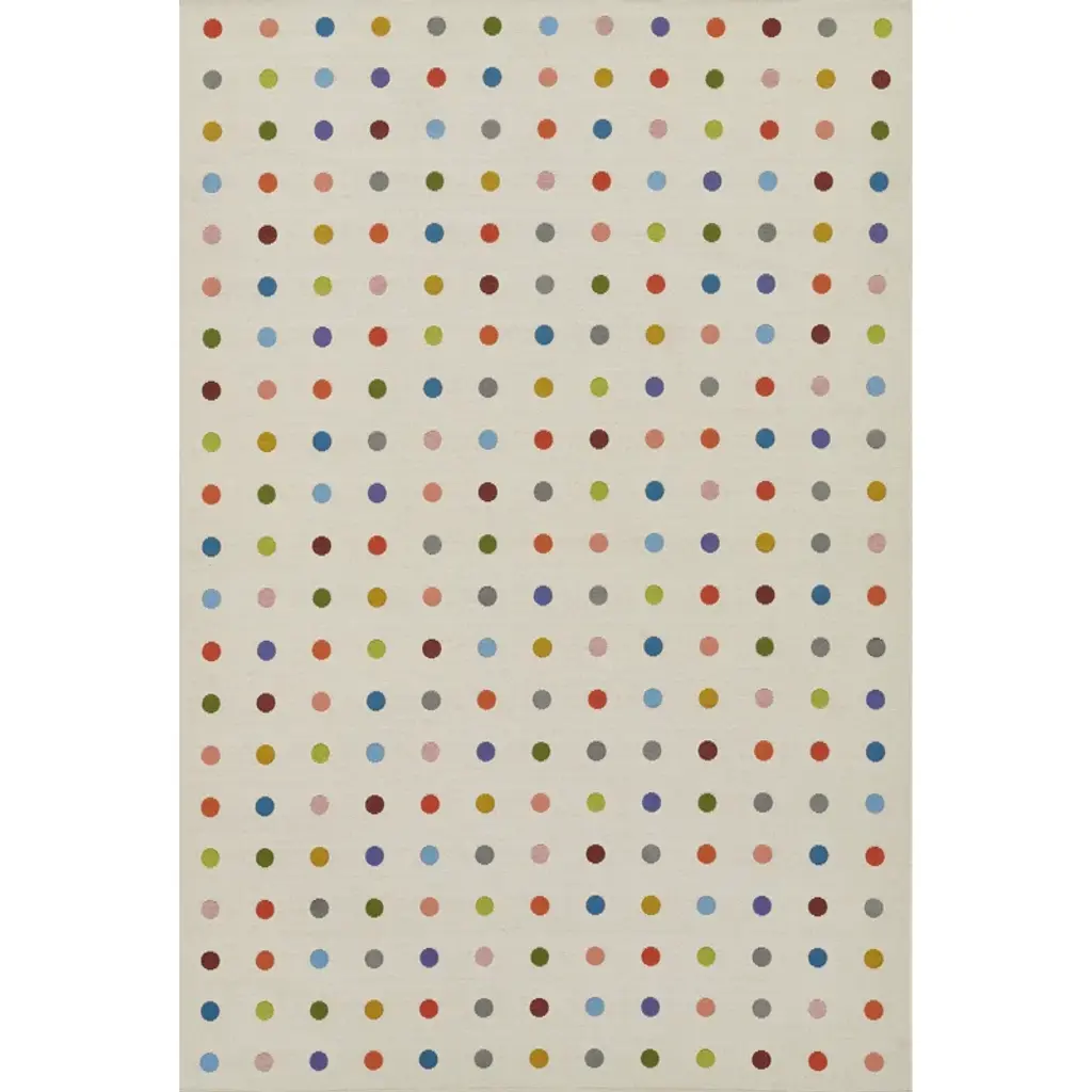 Expertly crafted with vibrant colors and fun polka dots, this custom-made wool area rug is the perfect addition to any modern space. Hand-tufted using high-quality ivory wool, it adds a playful touch while providing durable comfort. Bring a pop of personality to your room with this stylish and unique statement piece. Hand-Tufted Color: Ivory Made with Wool loop-cut Pile Made to Order in 20-45 Days Perfect Fit for a modern room, kids, living or bedroom USERS GUIDE Avoid prolonged moisture Vacuum regularly and/or shake to remove dust Do not pull any loose threads. Use scissors to simply cut the ends The blot spills immediately with a white cloth. Harsh chemicals may damage or fade the rug Use rug protectors under heavy furniture