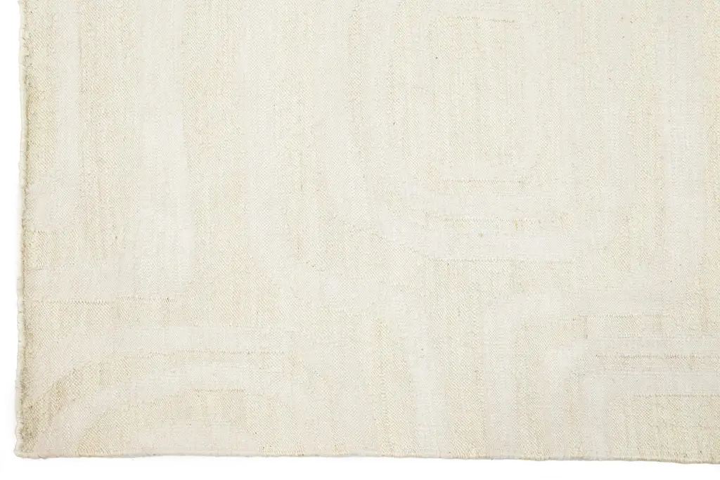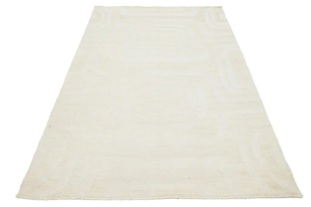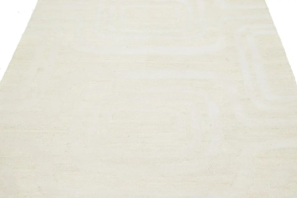 Modern Dhurrie Natural Jute & Wool Rug Handmade In Ivory