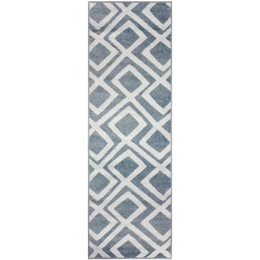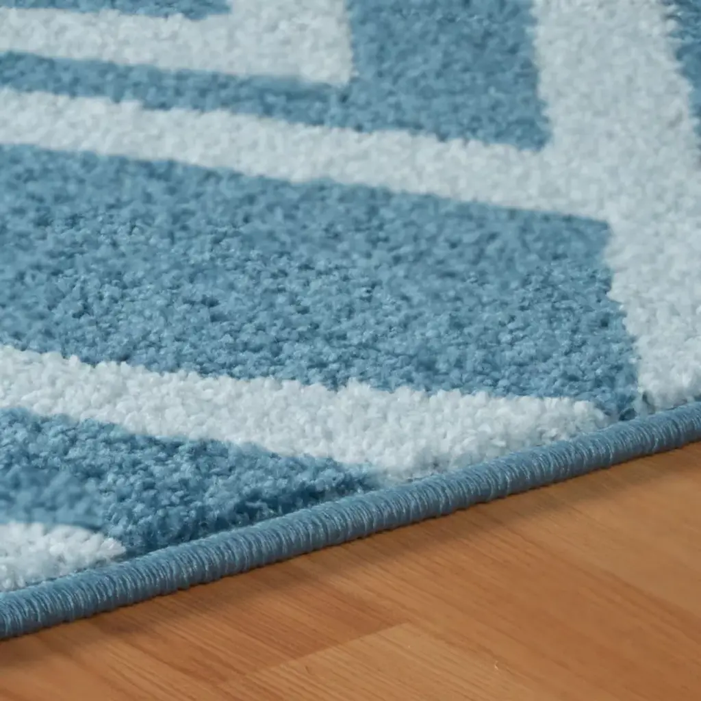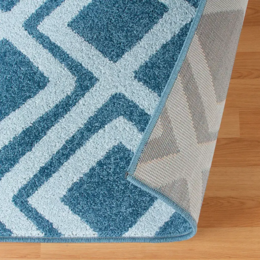Add modern look to your space with the Jaydon Area Rug. Made with 100% Polypropylene fibers with a soft 0.24” pile height, Isaih has a cozy feel that can stand up to the most frequented rooms in your home. An inter-locking diamond pattern in your choice of blue or grey with a light geometric overlay gives this rug a bold, stylish look. Elevate the beauty of your floors with this festive, trendy rug.