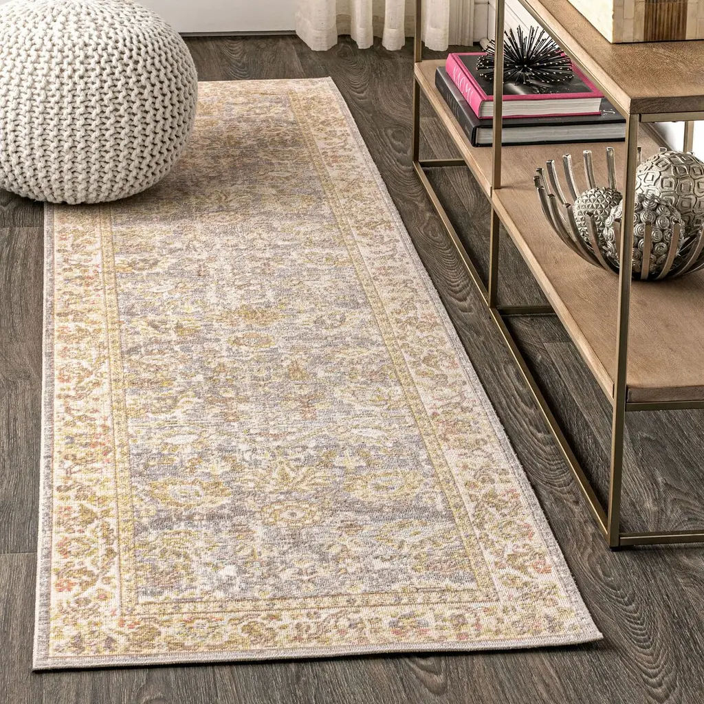 The elaborate floral motifs of antique Peshawar floor coverings inspired this rug's design, though here they're rendered in soft neutrals to complement contemporary as well as traditional rooms. A rug pad is recommended to help prevent slipping and extend the life of the rug.