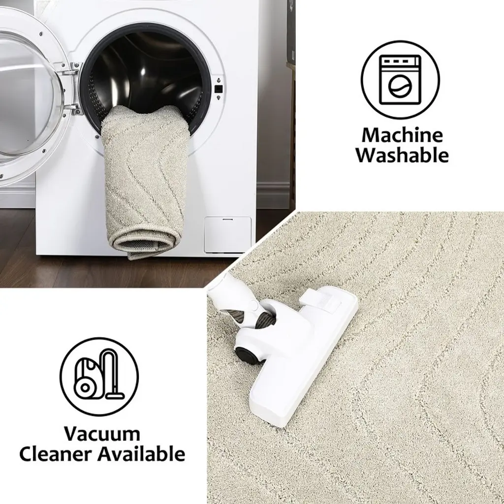 Modern Geometric Wave Area Rug Thick Non-Shedding Stain-Resistant Rug Carpet, 3'x5' Beige
