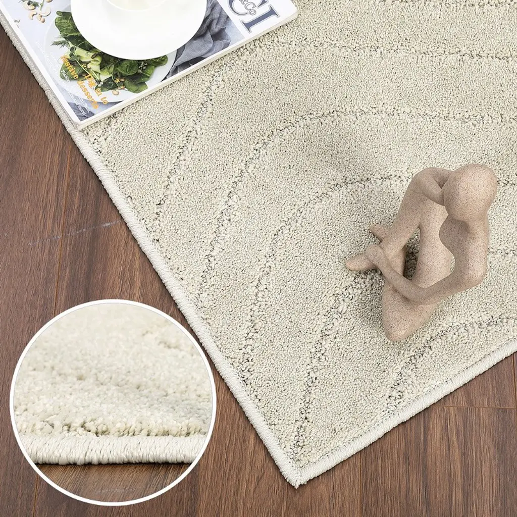 Modern Geometric Wave Area Rug Thick Non-shedding Stain-resistant Rug Carpet, 3'x5' Beige