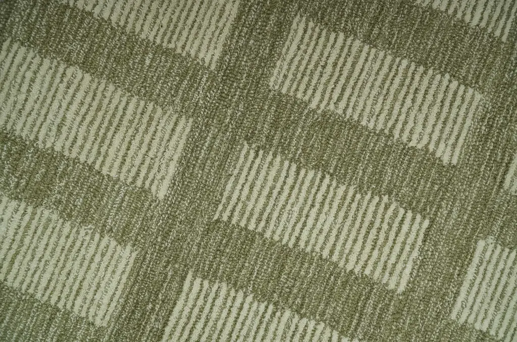 Modern Geometrical Olive And Ivory Textured Hand Tufted Multi Size Wool Rug - 2.6x11