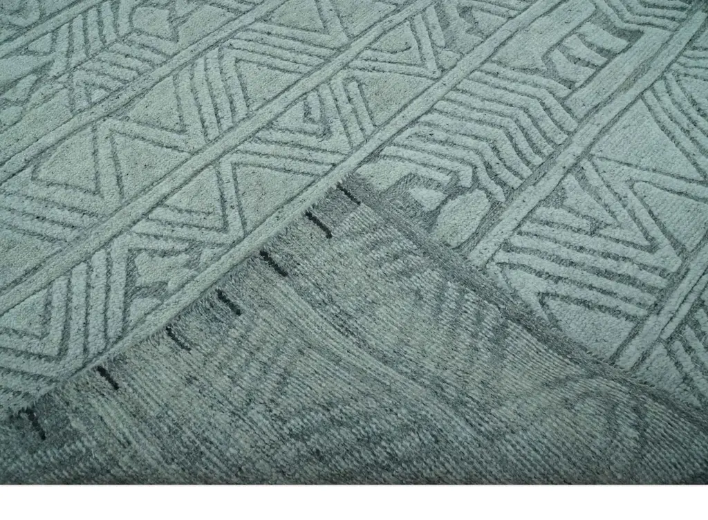 Contemporary and bold, our Modern geometric rug adds a touch of sophistication to any room. Its silver and gray chevron design and intricate hand-carved texture make it a unique and stylish addition. Made of high-quality wool for durability and comfort. Hand-Knotted Rug Made with Wool Color: Silver and Gray ALL SIZES ARE MADE TO ORDER 30 - 60 Day USERS GUIDE Avoid prolonged moisture Vacuum regularly and shake to remove dust Do not pull any loose threads. Use scissors to simply cut the ends The blot spills immediately with a white cloth. Harsh chemicals may damage or fade the rug Use rug protectors under heavy furniture