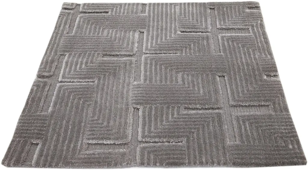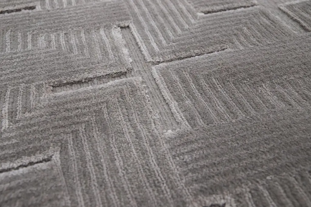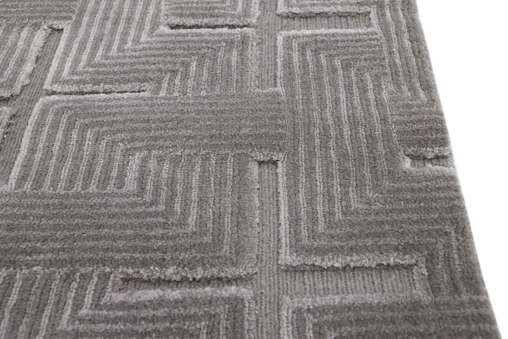 Modern Gray Handmade Geometric And Textured Custom Wool Rug