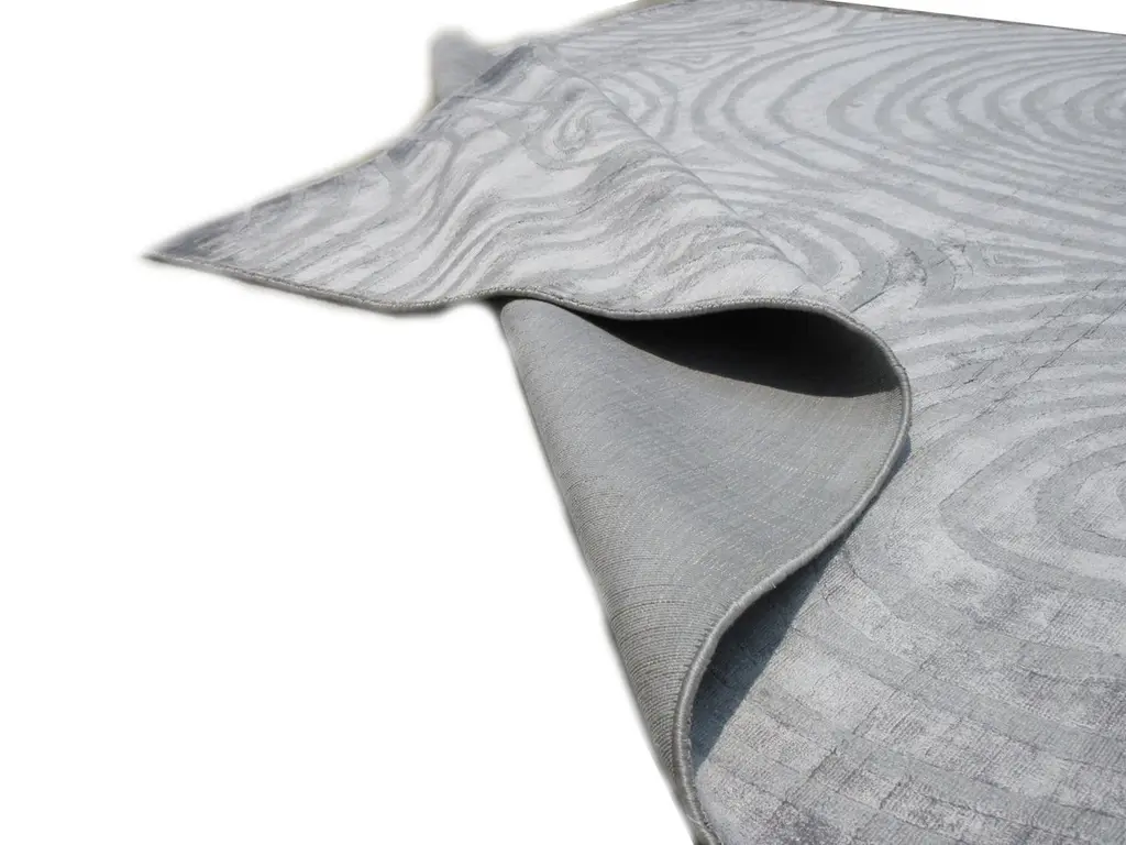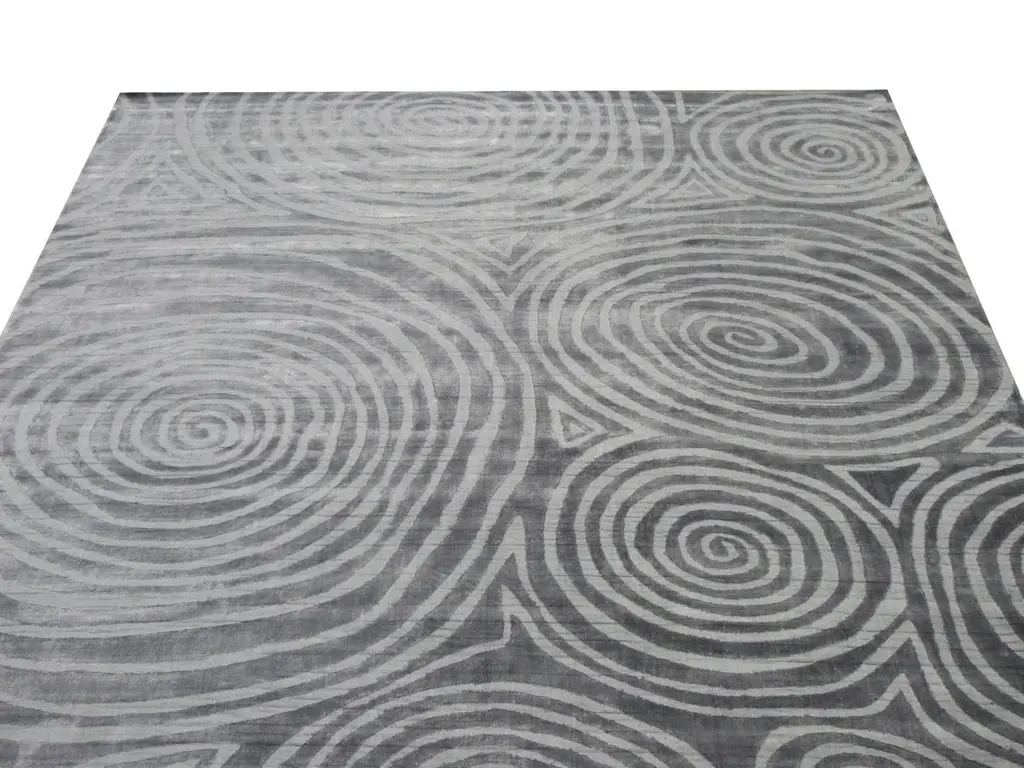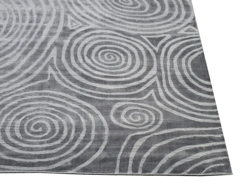 Handmade art silk pile on a cotton foundation.Modern spiral designDimensions: 7'10" x 10'1" Origin: IndiaField Color: GreyBorder Color: Light-Grey,