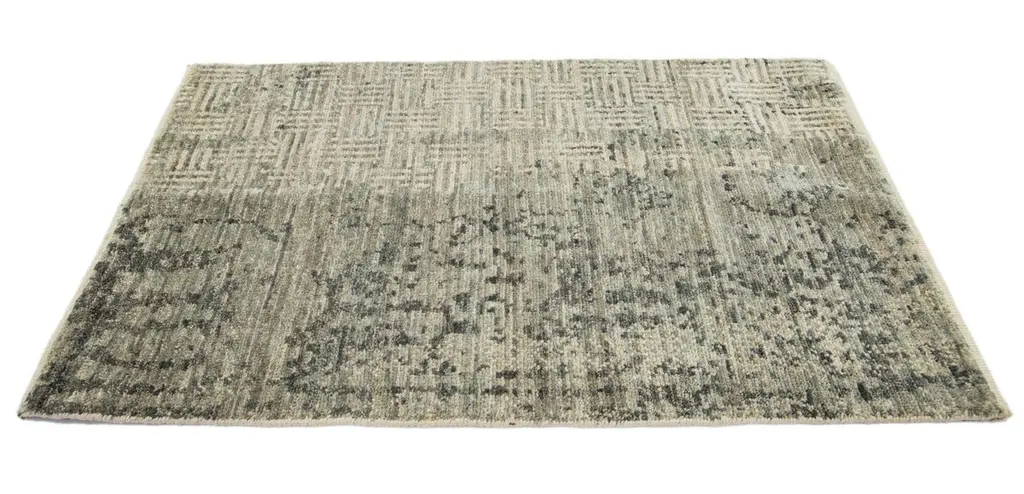 Modern Handmade Abstract Custom Beige & Gray Wool Rug