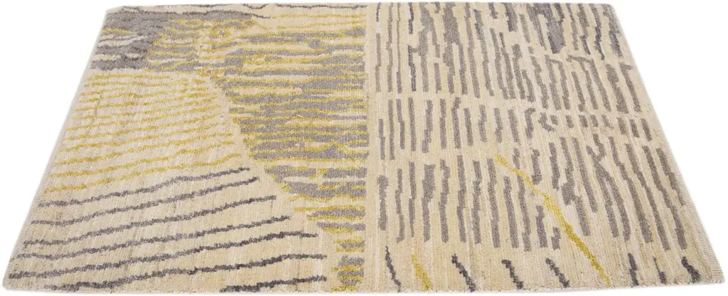 Modern Handmade Abstract Custom Beige Wool Rug
