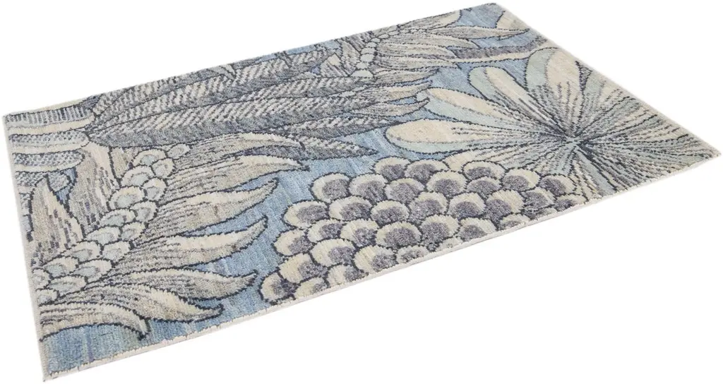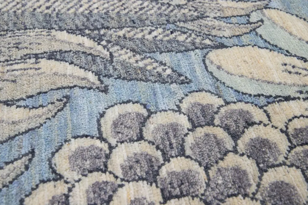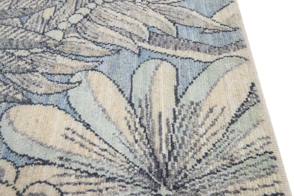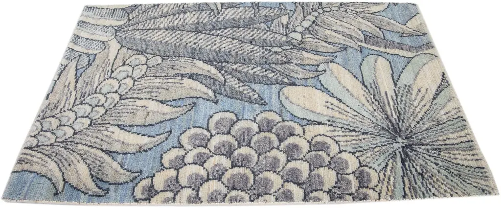 Modern Handmade Floral Custom Blue Wool And Silk Rug