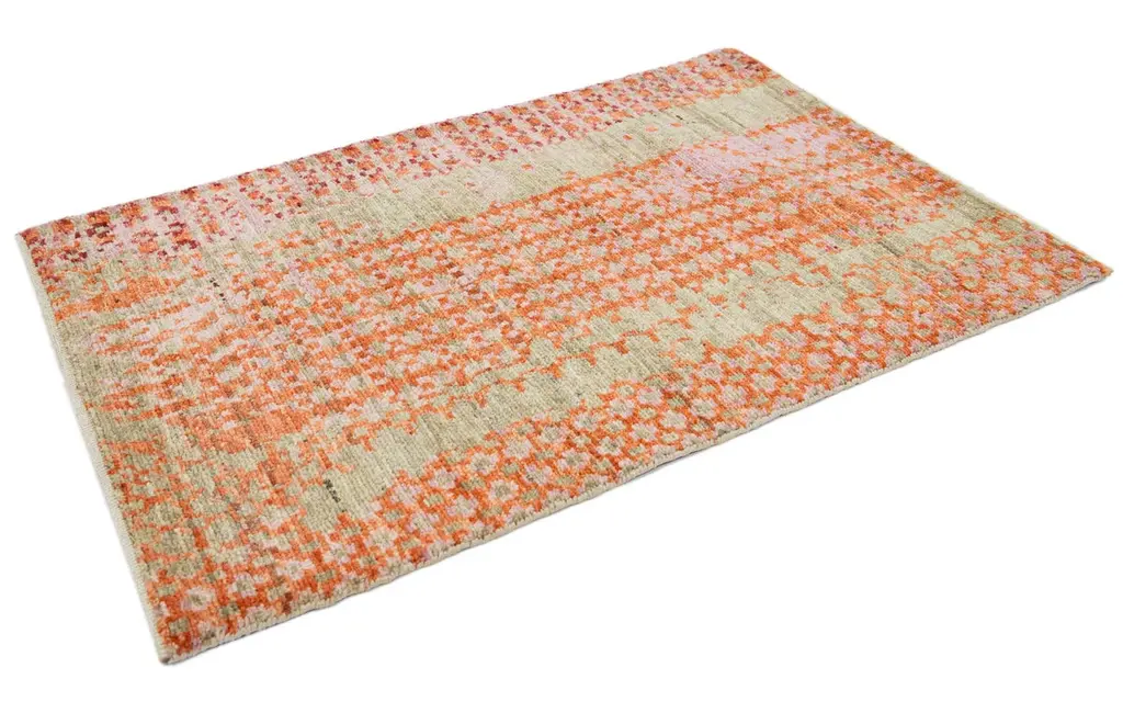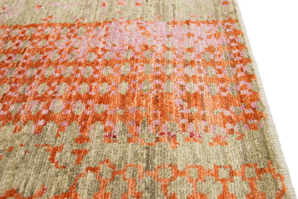 Modern Handmade Orange Deconstruction Style Custom Wool Rug