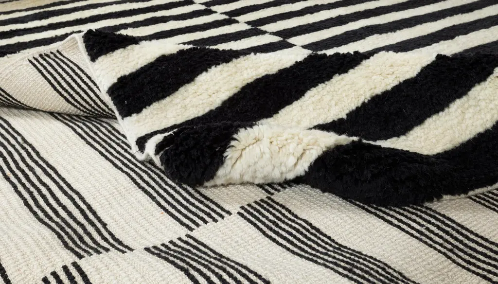 Modern Handmade Striped Tulu Rug In Black And Ivory Wool – Customizable