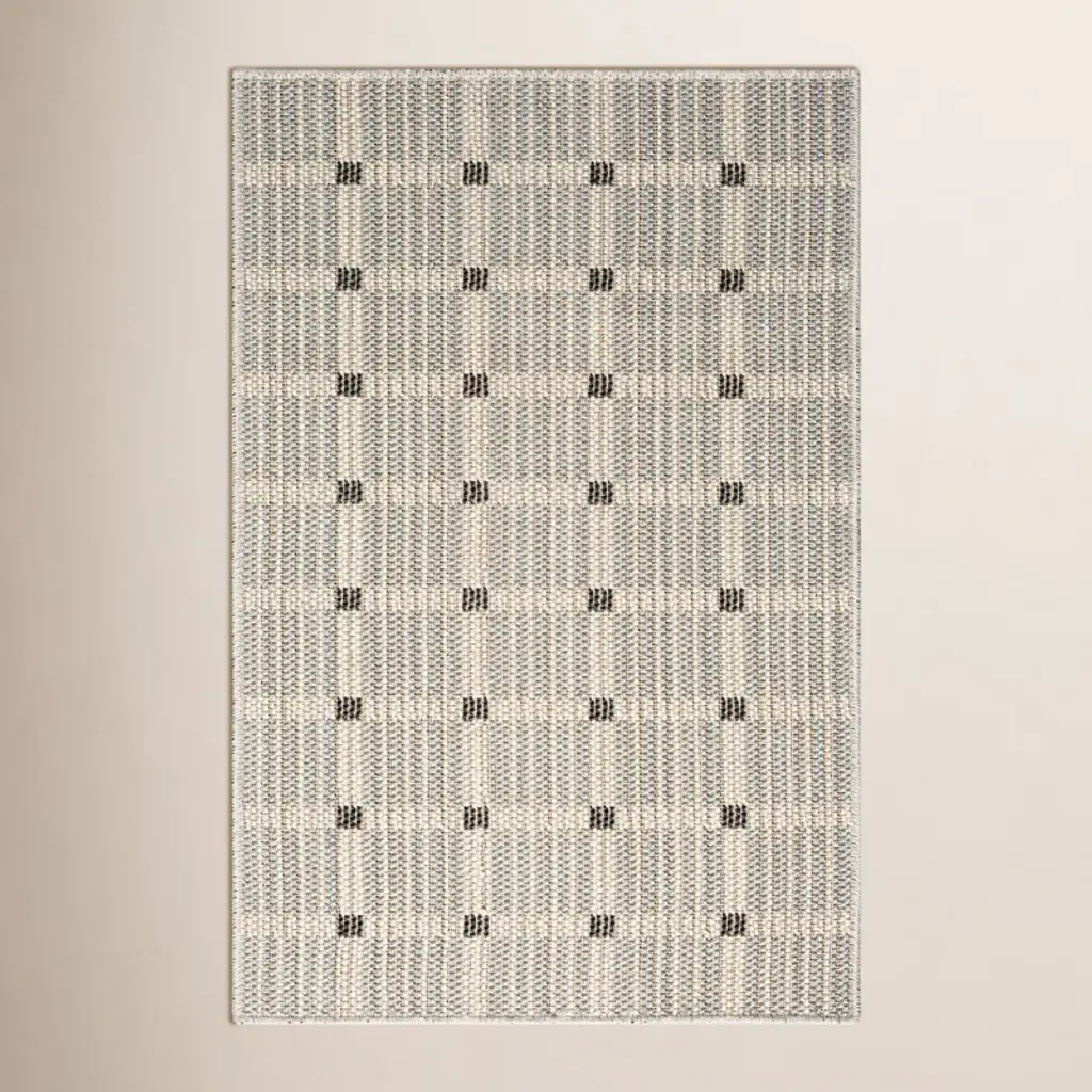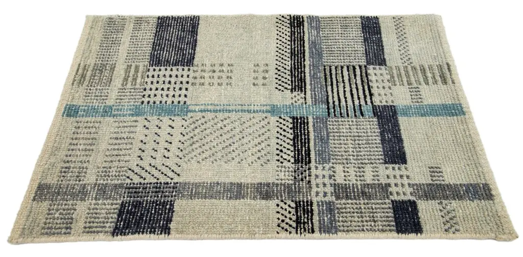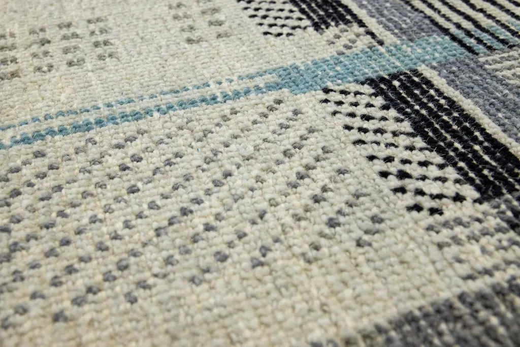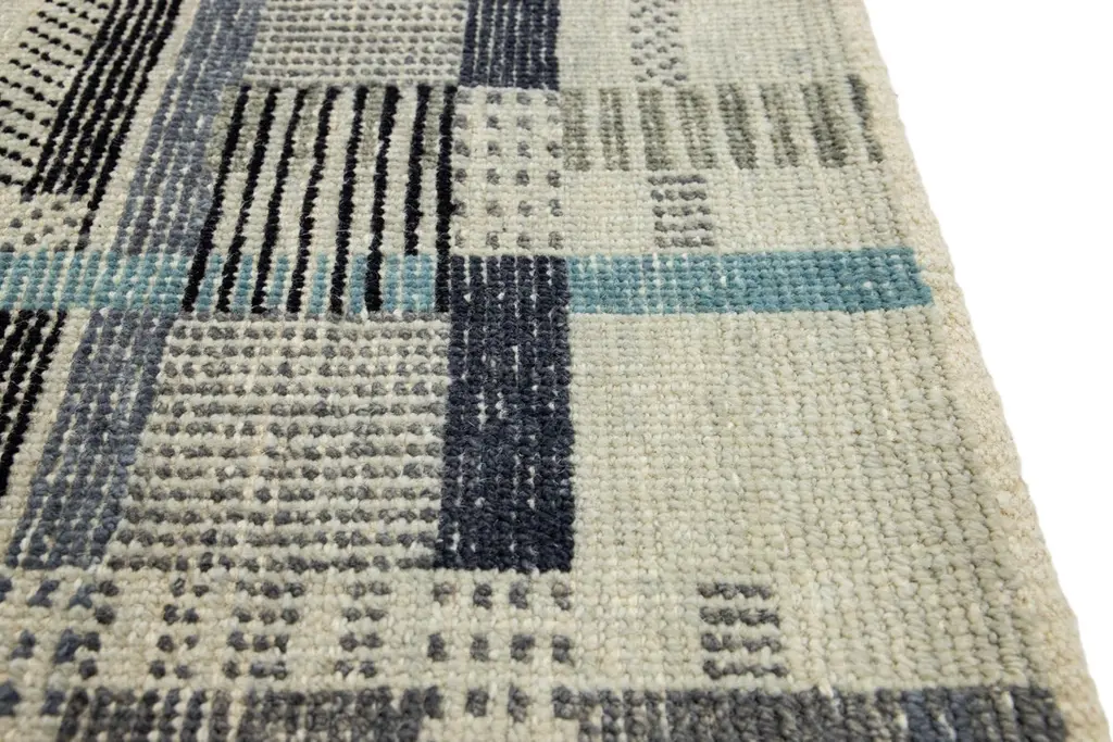 Modern Handmade Structured Plaid Custom Gray Wool Rug