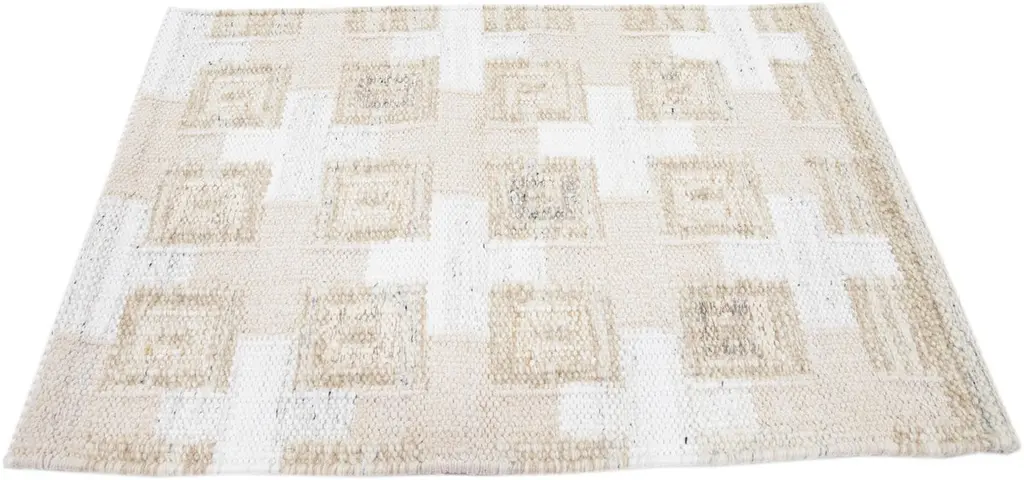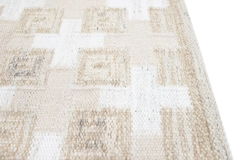 Modern Handmade Swedish Style Custom Beige Wool Rug