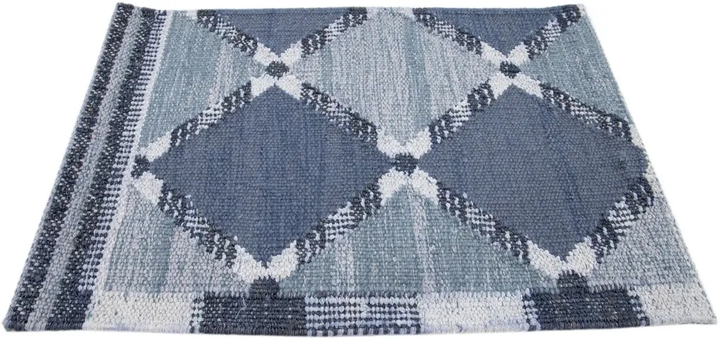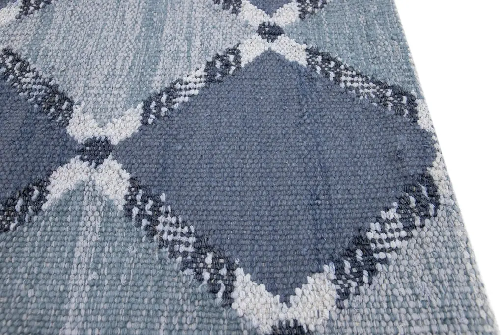 Modern Handmade Swedish Style Navy Blue Custom Wool Rug