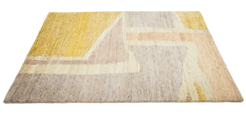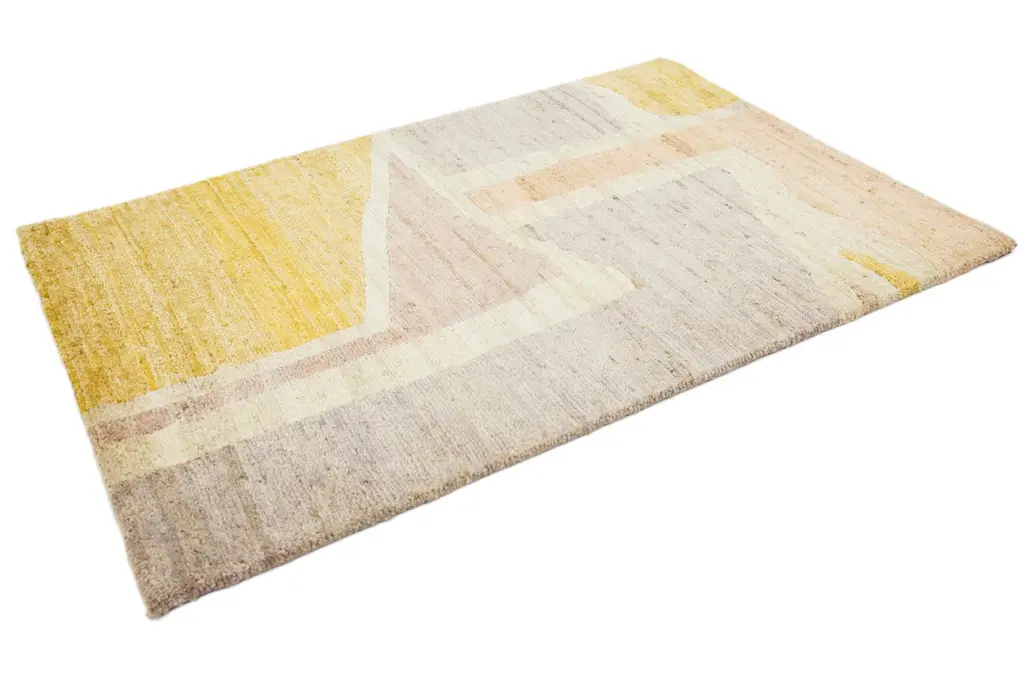 Modern Handmade Yellow & Peach Abstract Custom Wool Rug