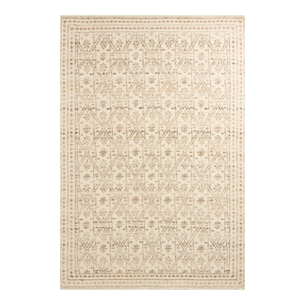 Modern Khotan Style Handmade Geometric Custom Beige Wool Rug