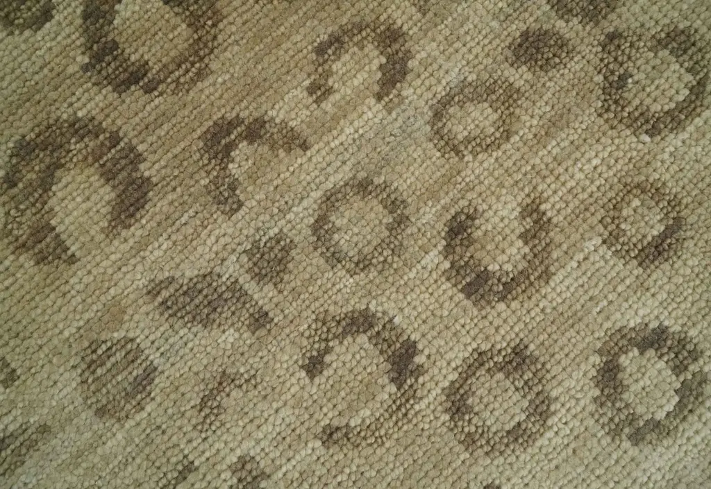 Modern Leopard Design Hand Knotted Camel And Taupe Custom Made Wool Area Rug - 2.6x7