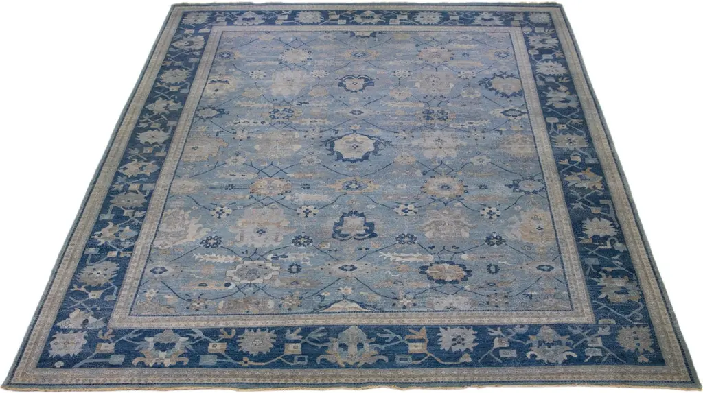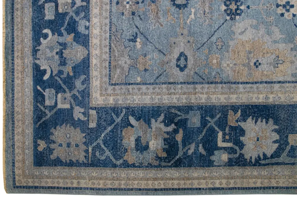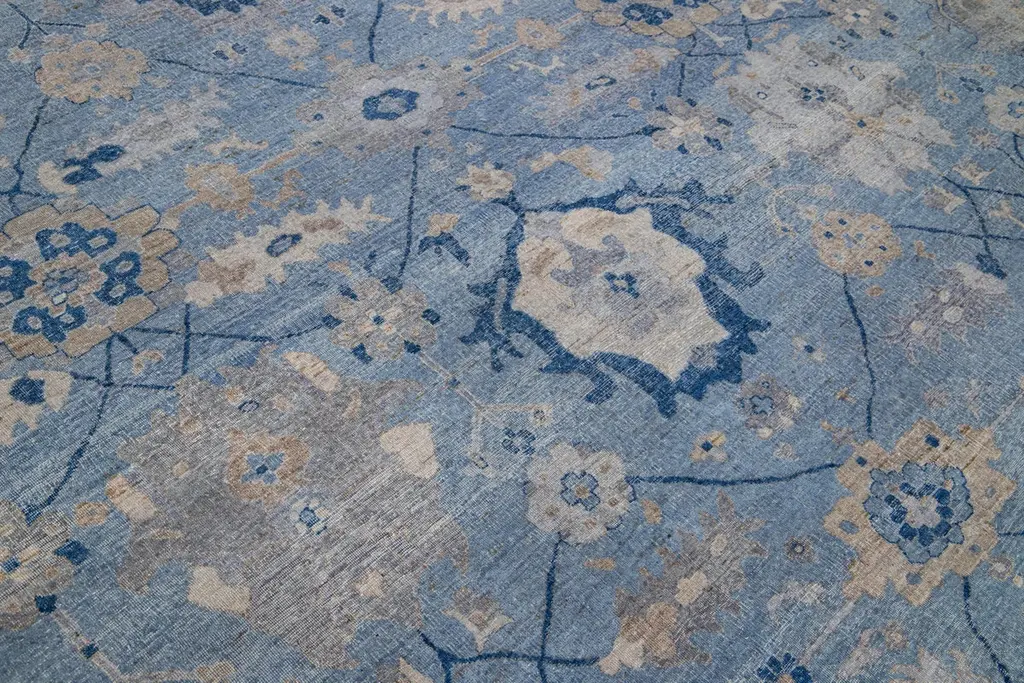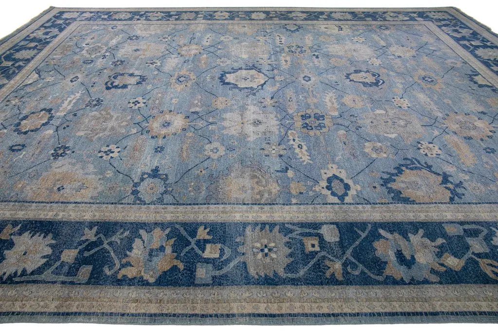 The Artisan line from Apadana brings an exquisite antique style to any space. This hand-knotted rug showcases a beautiful all-over floral pattern with a Blue color scheme and multi-colored accents. It measures 14' 10" x 19' 00" in size.Our rugs are professional cleaning before shipping.