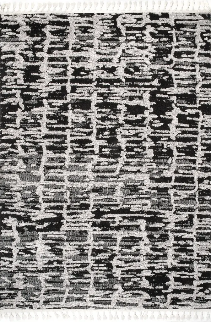 Modern Moroccan Style Black & Ivory Handmade Custom Wool Rug