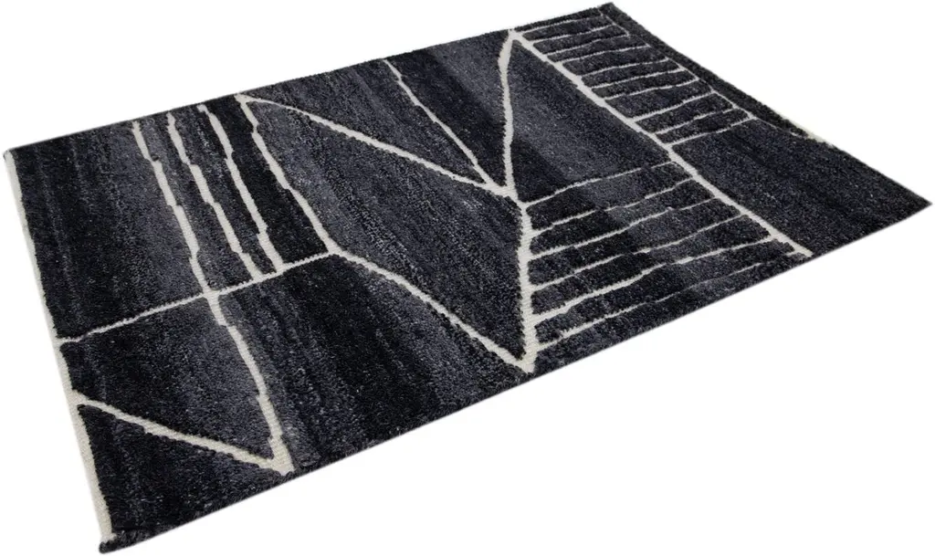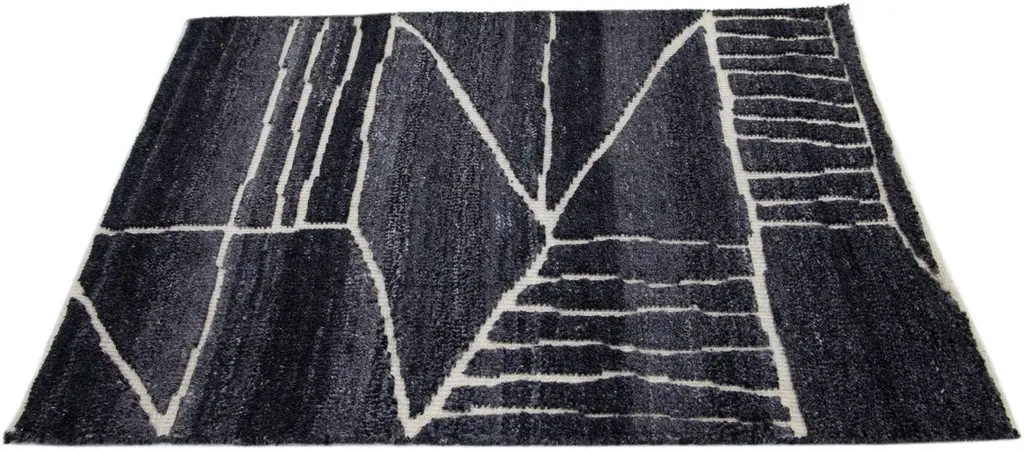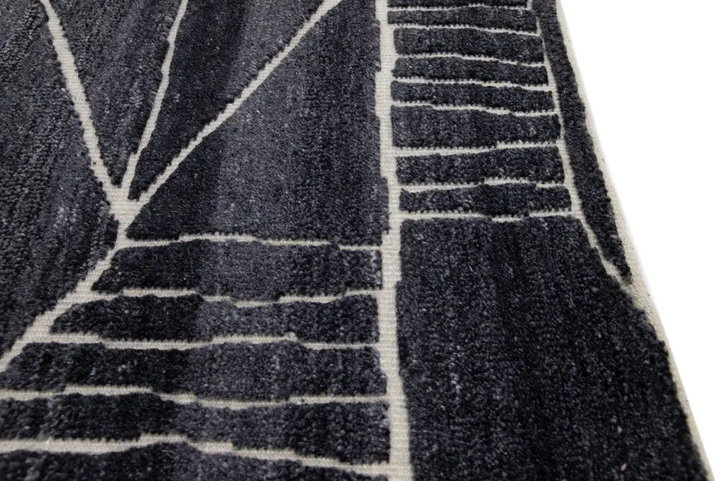 Modern Moroccan Style Handmade Black Custom Wool Rug