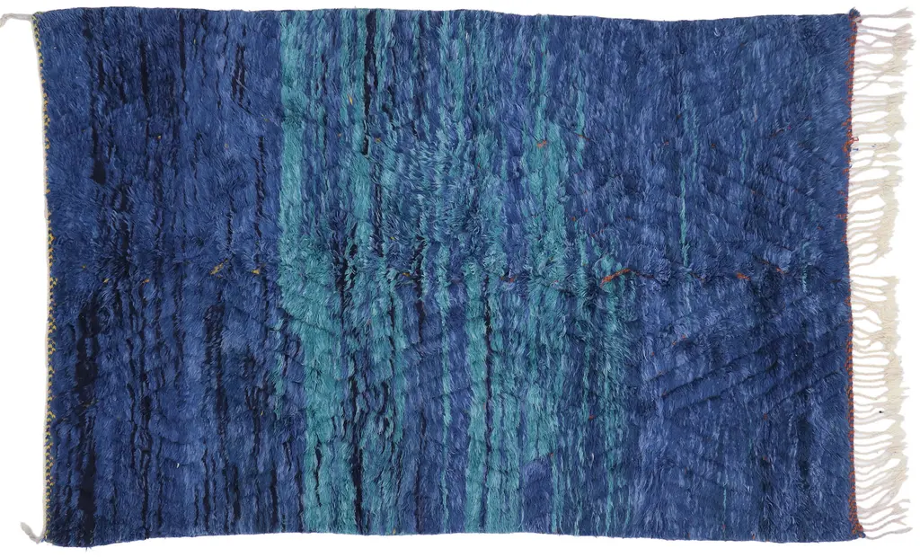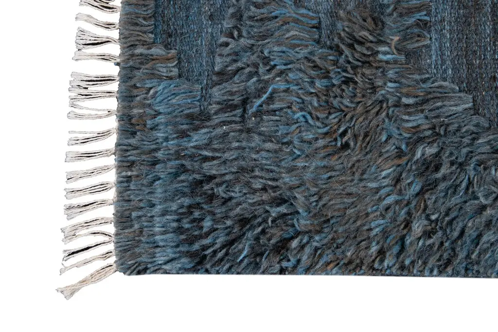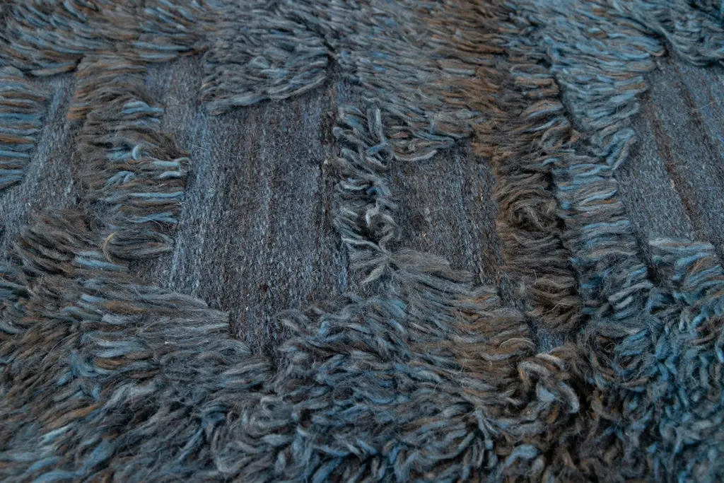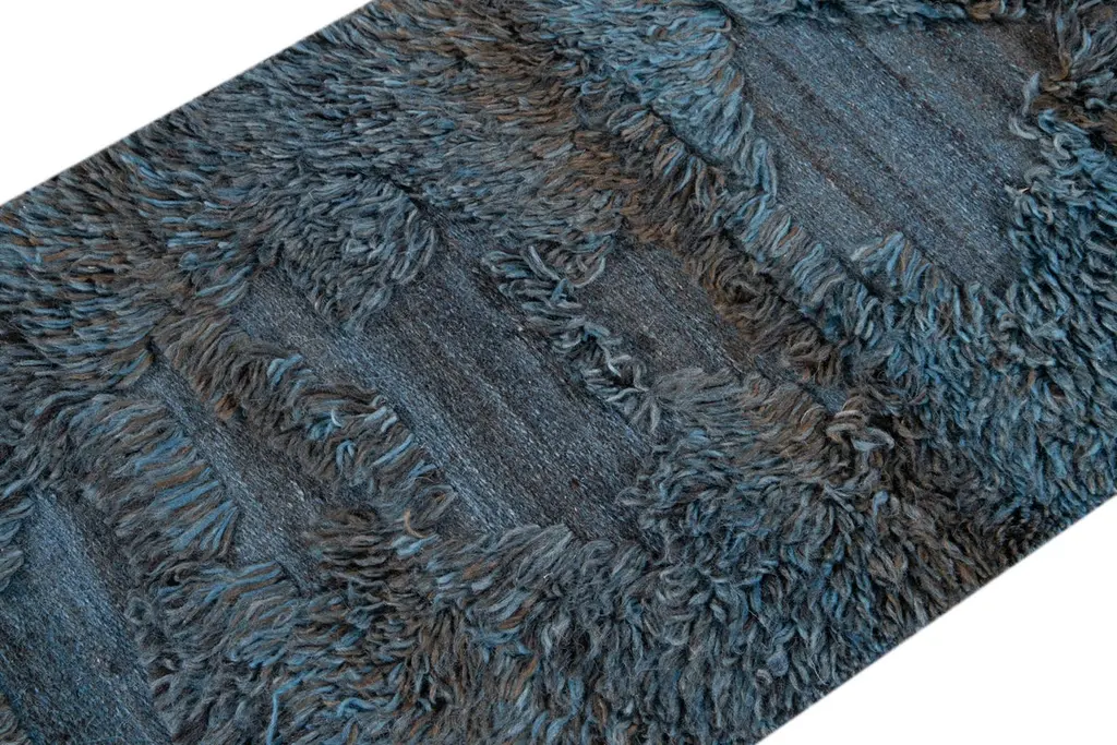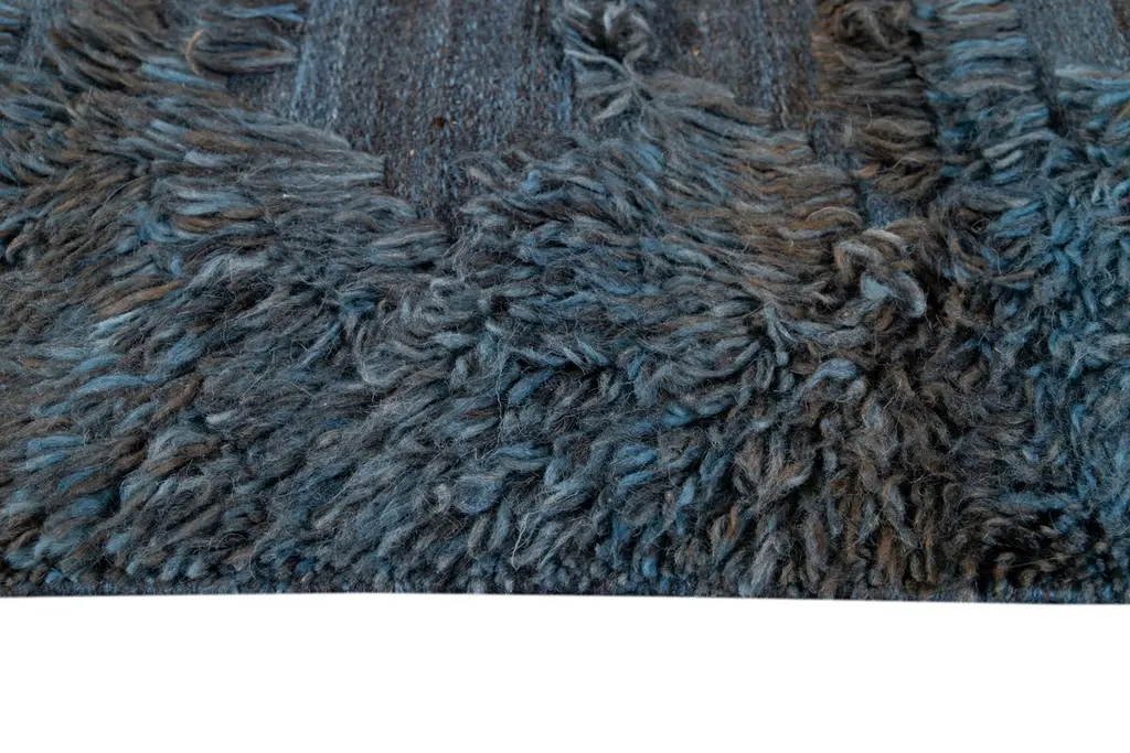 Modern Moroccan Style Handmade Blue & Brown Custom Wool Rug