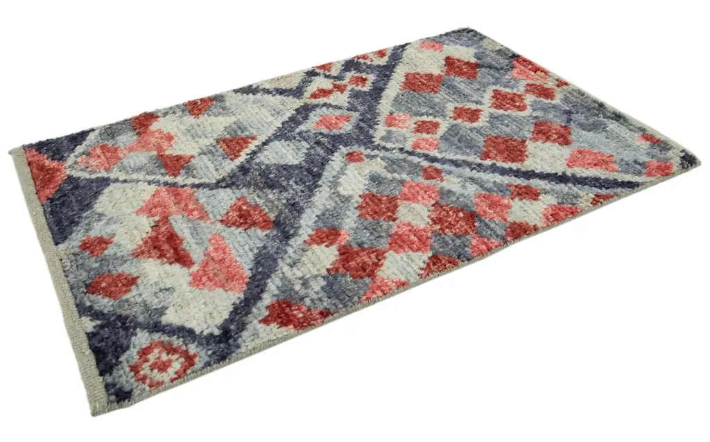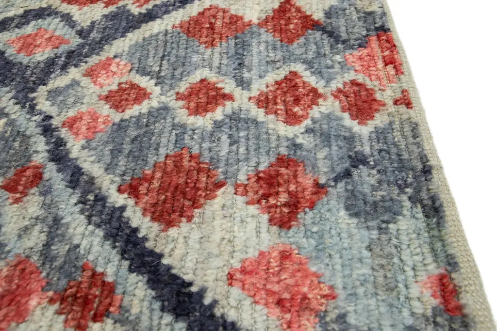 Modern Moroccan Style Handmade Geometric Gray & Red Custom Wool Rug