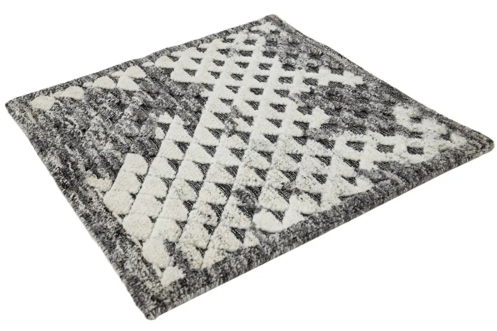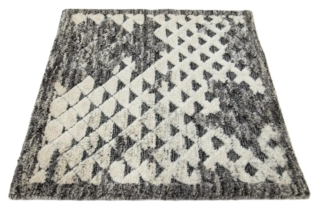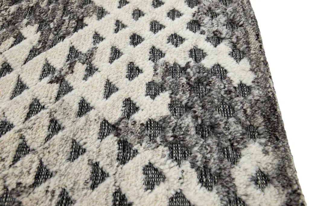 Modern Moroccan Style Handmade Gray & White Custom Wool Rug