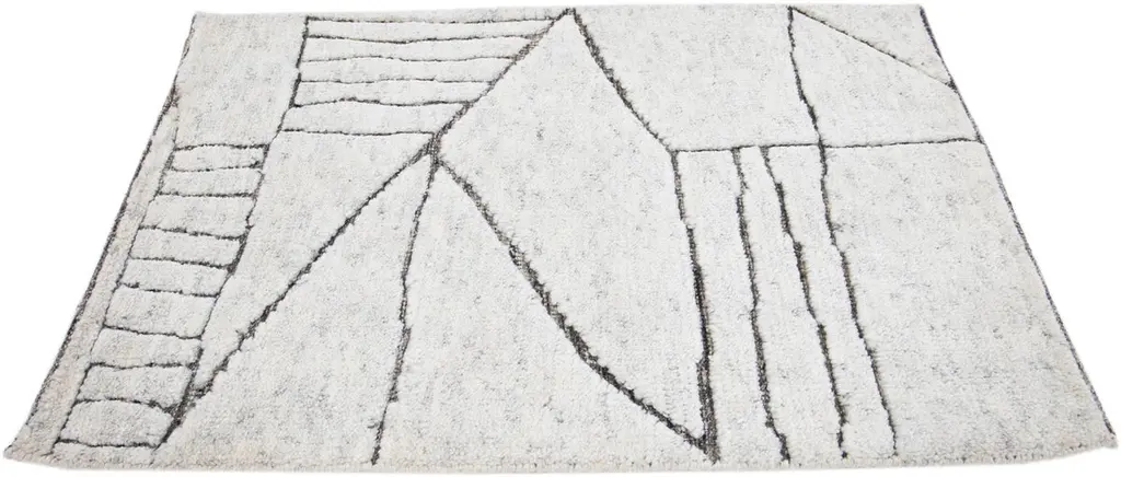 Modern Moroccan Style Handmade Ivory Custom Wool Rug