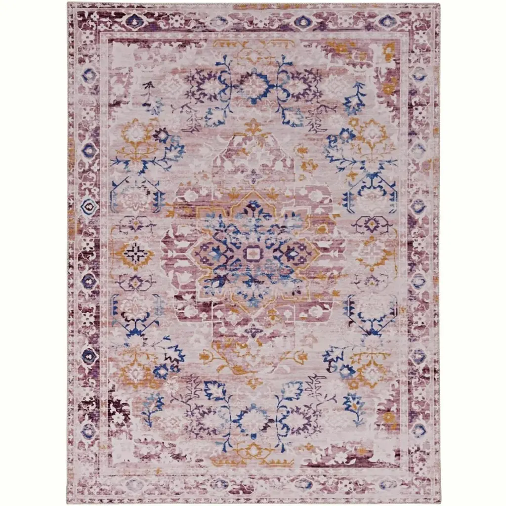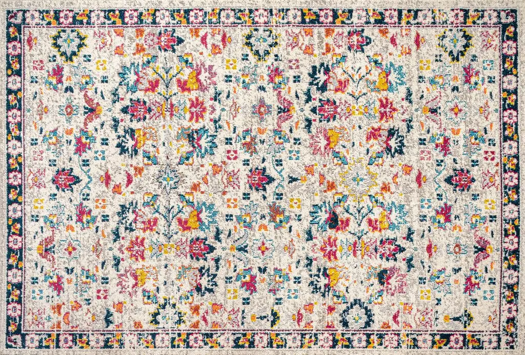 Antique Persian carpets inspired this polypropylene rug's intricate floral motif and intentional abrash—the fading that occurs to fine Eastern rugs over time. This rug's brilliant colors, however, provide a fresh update and make it suitable for even contemporary rooms. A rug pad is recommended to help prevent slipping and extend the life of the rug.