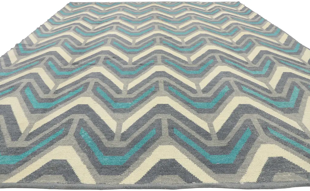 Modern Retro Moroccan Rug, 8'10 X 12'07