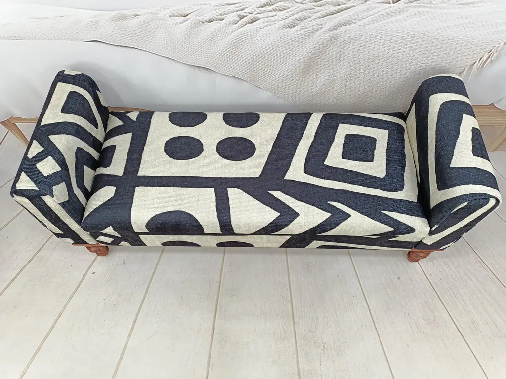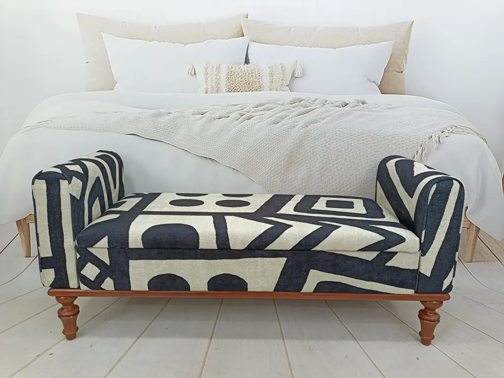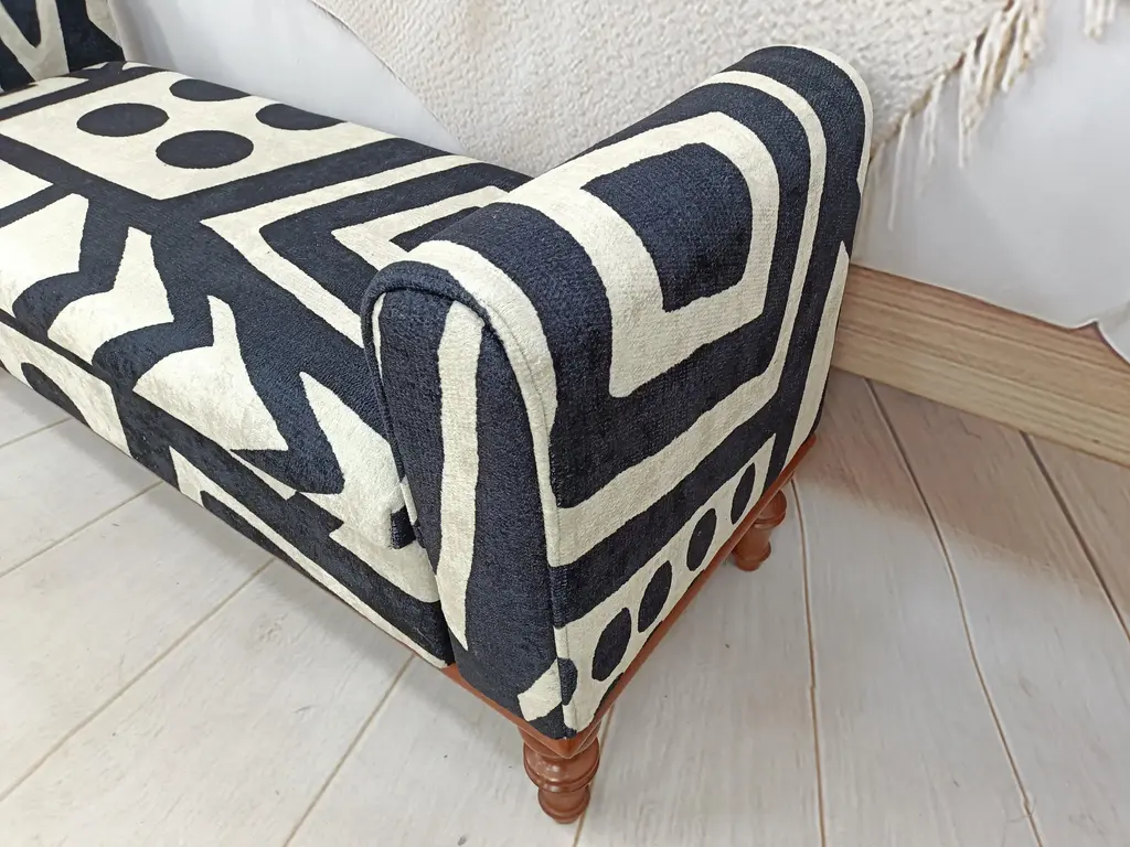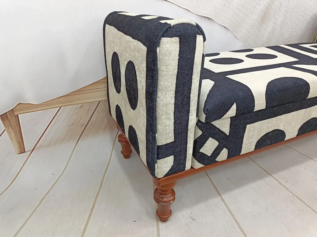 Modern Rug Printed Fabric Upholstered Entryway Storage Bench With Arms