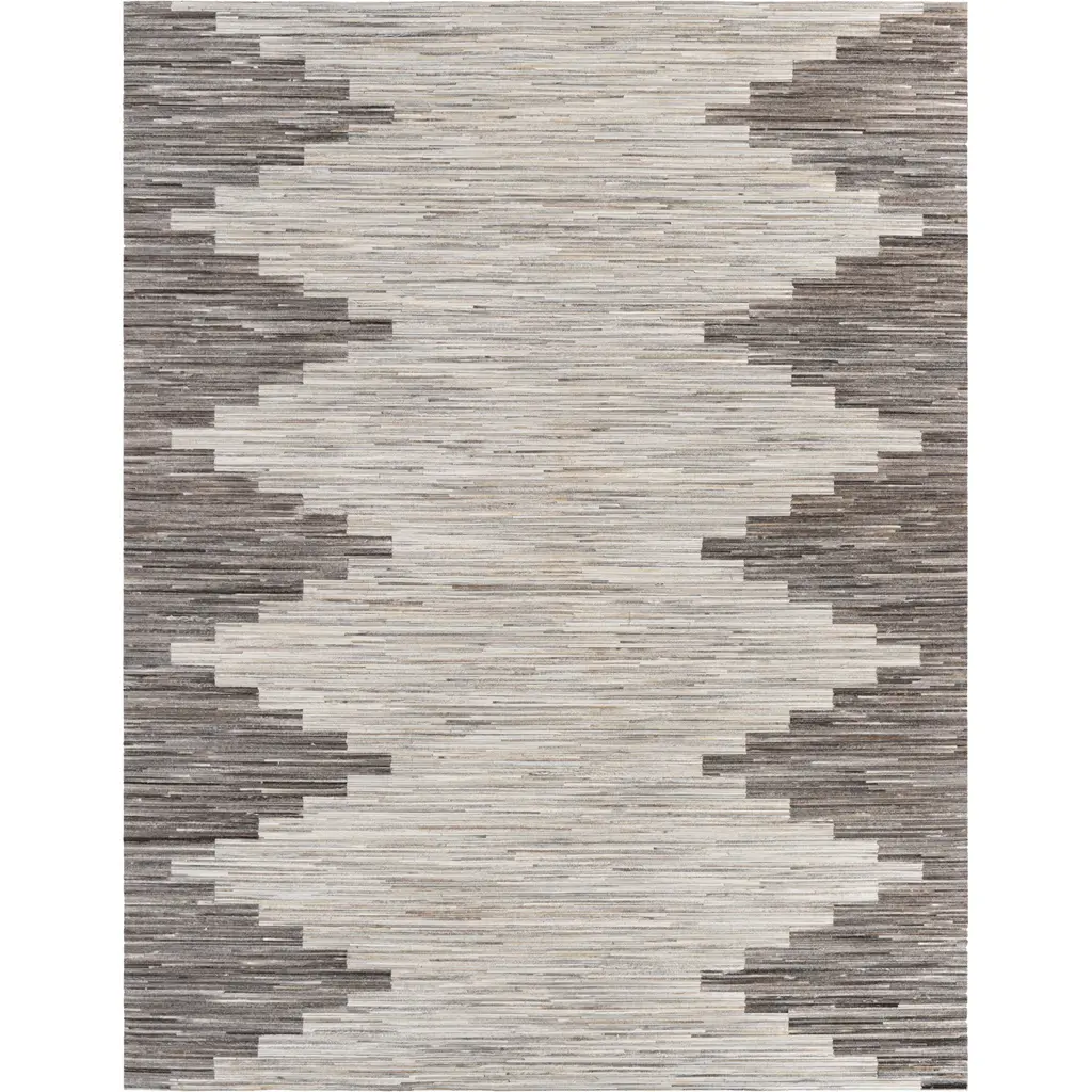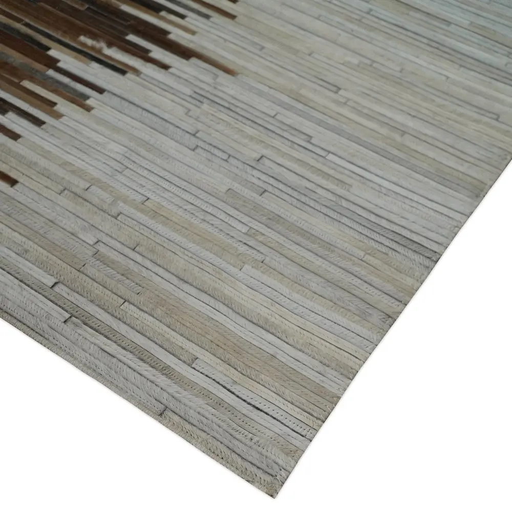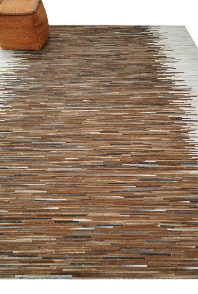 Modern Stripes Cowhide Leather Striped Tan Brown And Ivory Leather Multi Size Area Rug - 2.6x6
