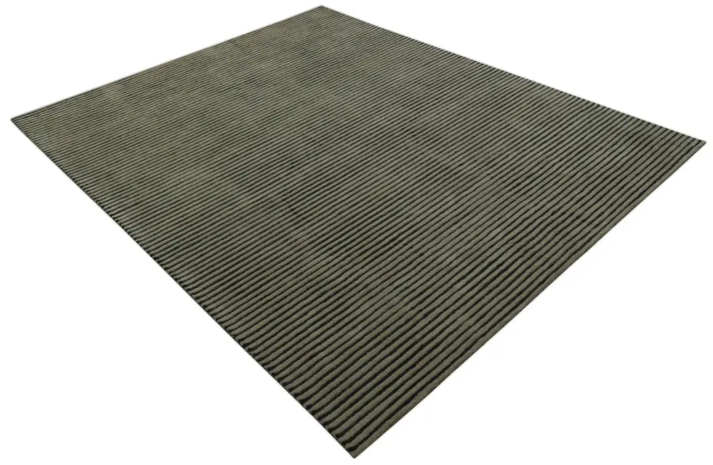 Modern Stripes Design Black And Brown Hand Tufted Custom Made Wool Area Rug - 2.6x7