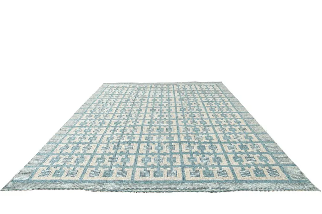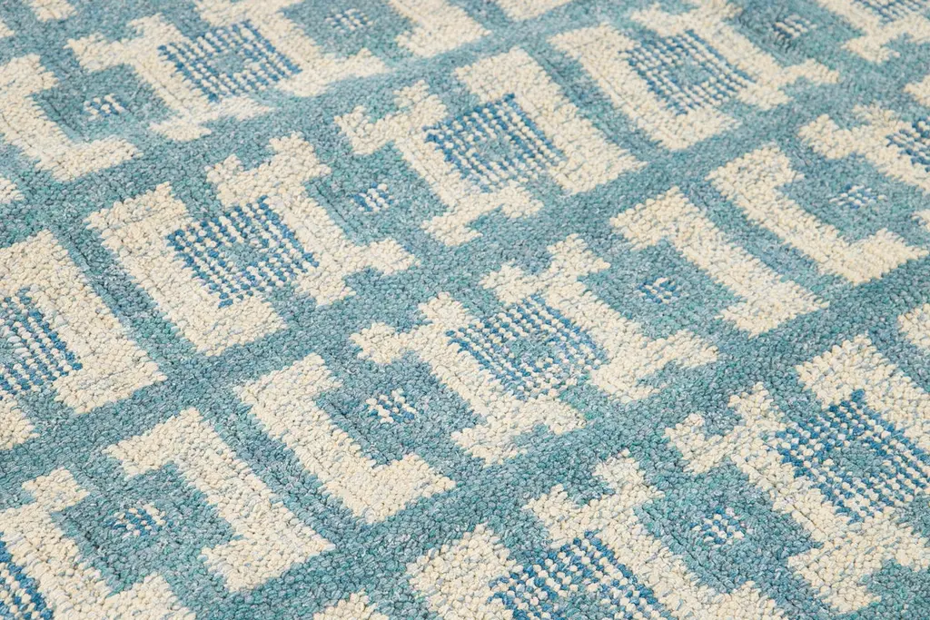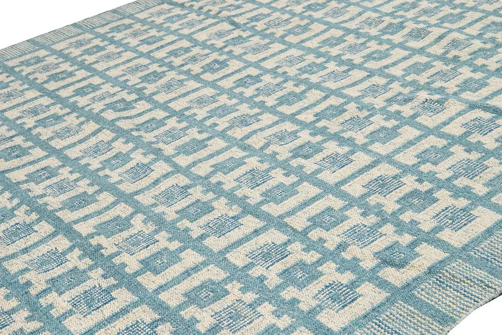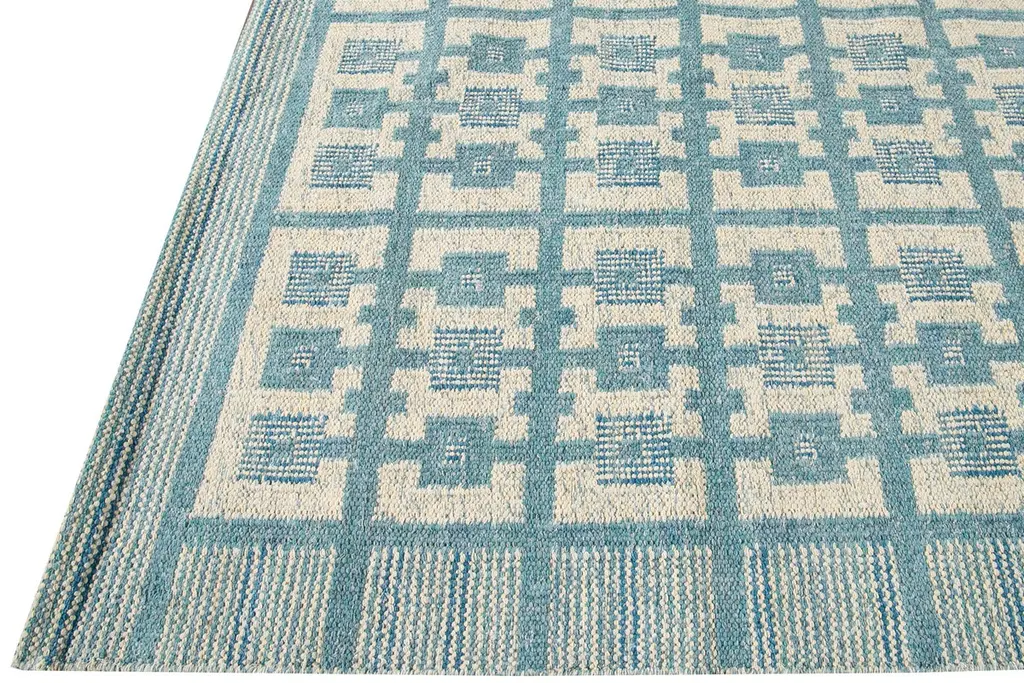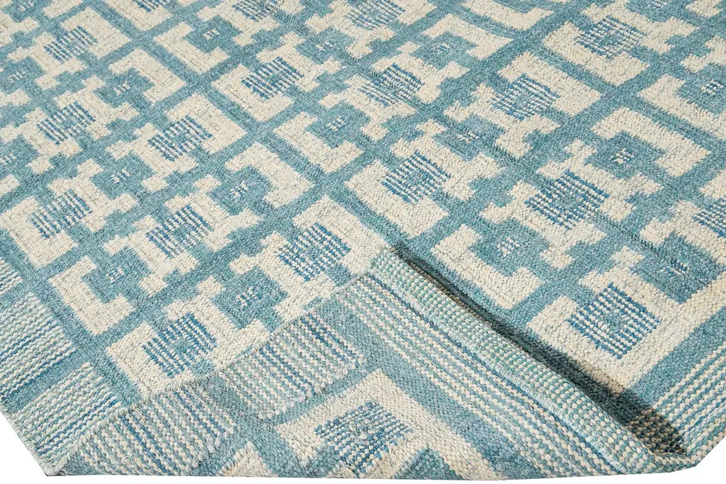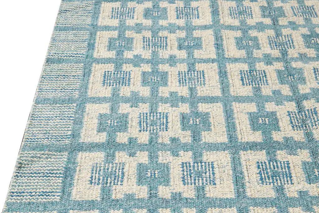 Modern Swedish Style Handmade Geometric Pattern Room Size Blue Wool Rug