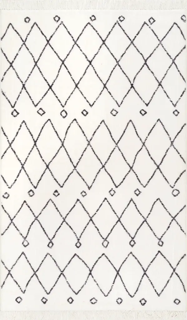 Modern Tracery Tasseled Rug | Beige - 3' X 5'