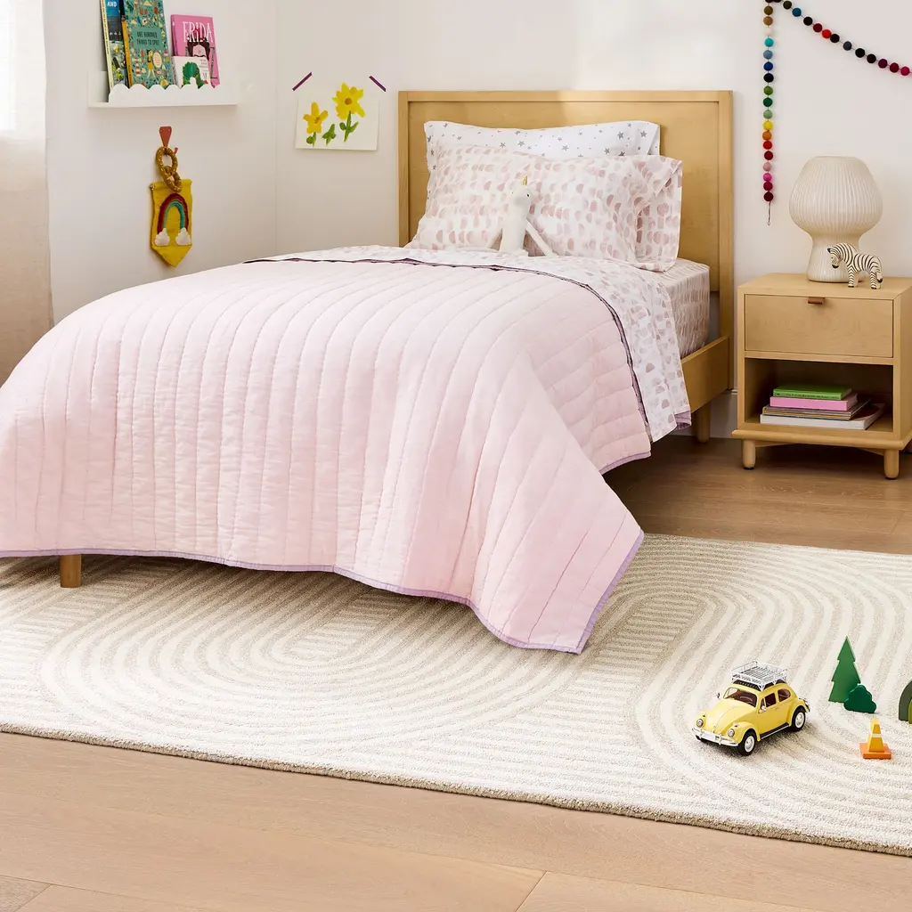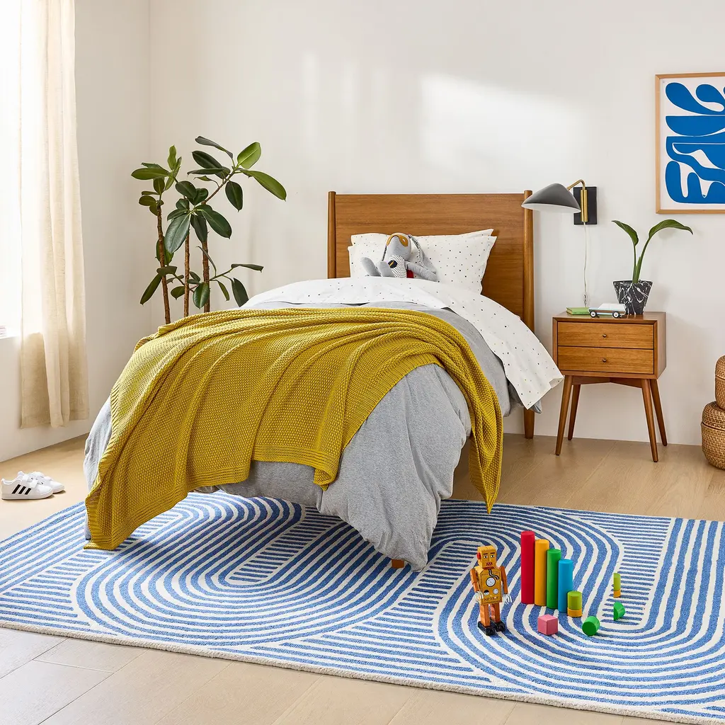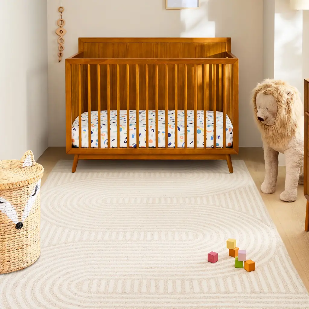 Designed with high-traffic playrooms in mind to be durable & easy to care for. Handcrafted in a Fair Trade Certified™ facility. Made of wool and rayon to be soft underfoot.