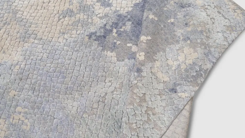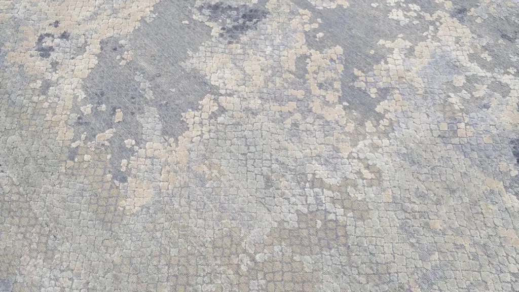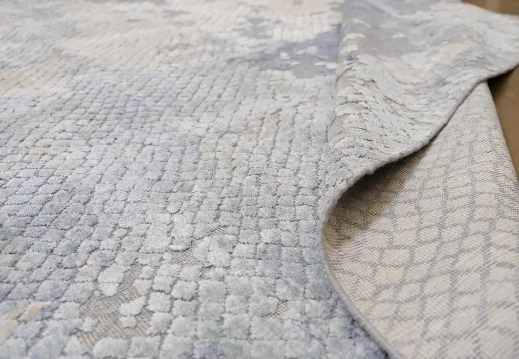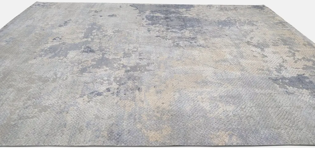 Showcasing an abstract design this rug evokes a painterly quality that transforms any space into a sophisticated sanctuary. The intricate texture and tonal variations create depth and visual intrigue, making it a perfect statement piece.Expertly hand-knotted from premium wool and bamboo silk, this rug is designed to be both durable and soft underfoot. Its abstract pattern complements contemporary, transitional, and minimalist interiors, seamlessly tying together your living room, bedroom, or office decor. This piece is more than just a rug—it's a work of art crafted by skilled artisans using traditional techniques.Key Features:Origin: Hand-knotted Material: High-quality Hand Spun wool and Bamboo-SilkDesign: Abstract modern pattern with a painterly effectDimensions: 11'10''x15'Color Palette: Subtle tones of Blues and BeigeStyle: Perfect for contemporary, transitional, and minimalist interiorsWhether placed in a formal living room or a serene bedroom, this rug brings understated elegance and warmth to your space. Its versatile design and neutral palette ensure it enhances your decor while standing the test of time.