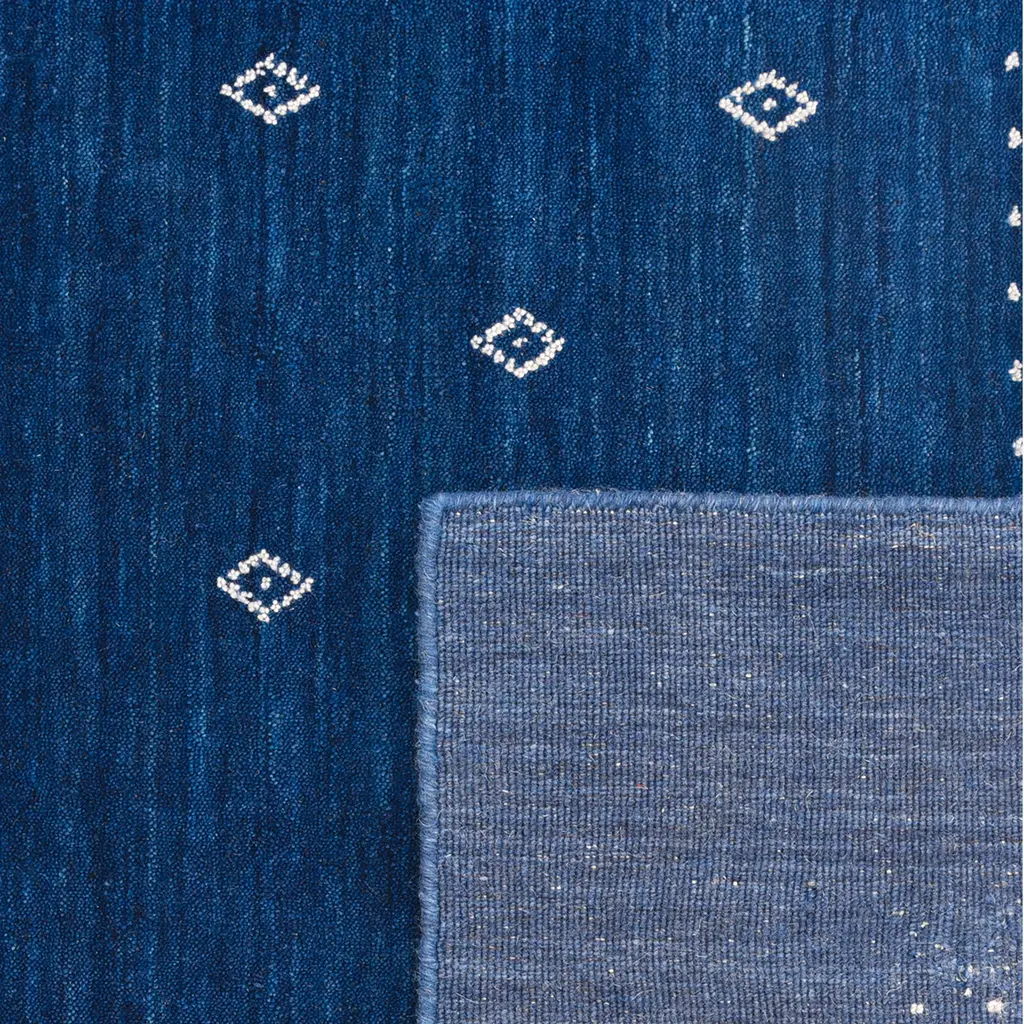This Modern Wool Cotton Blend Rug introduces a contemporary aesthetic to any room. Measuring 3' x 5', this area rug is designed to fit various spaces, from entryways to bedrooms or beneath small furniture arrangements. The rug features a sophisticated blue color, offering a calm and versatile foundation for diverse decor palettes. Constructed from a durable wool and cotton blend, the rug combines the natural resilience and warmth of wool with the softness and breathability of cotton. This material composition results in a comfortable underfoot feel and enhanced durability, making it suitable for everyday use. Its thoughtful construction ensures long-lasting quality and a refined texture. Handcrafted in India, this contemporary rug reflects traditional artisan skill combined with modern design principles. The blend of natural fibers contributes to a distinct look and feel. This piece serves as a functional decor element, providing both comfort and a stylistic anchor for your living space. For maintenance, regular vacuuming helps preserve the rug's appearance. Spot cleaning is recommended for spills to keep the material in optimal condition. This rug offers a practical and stylish solution for enhancing your home's interior.