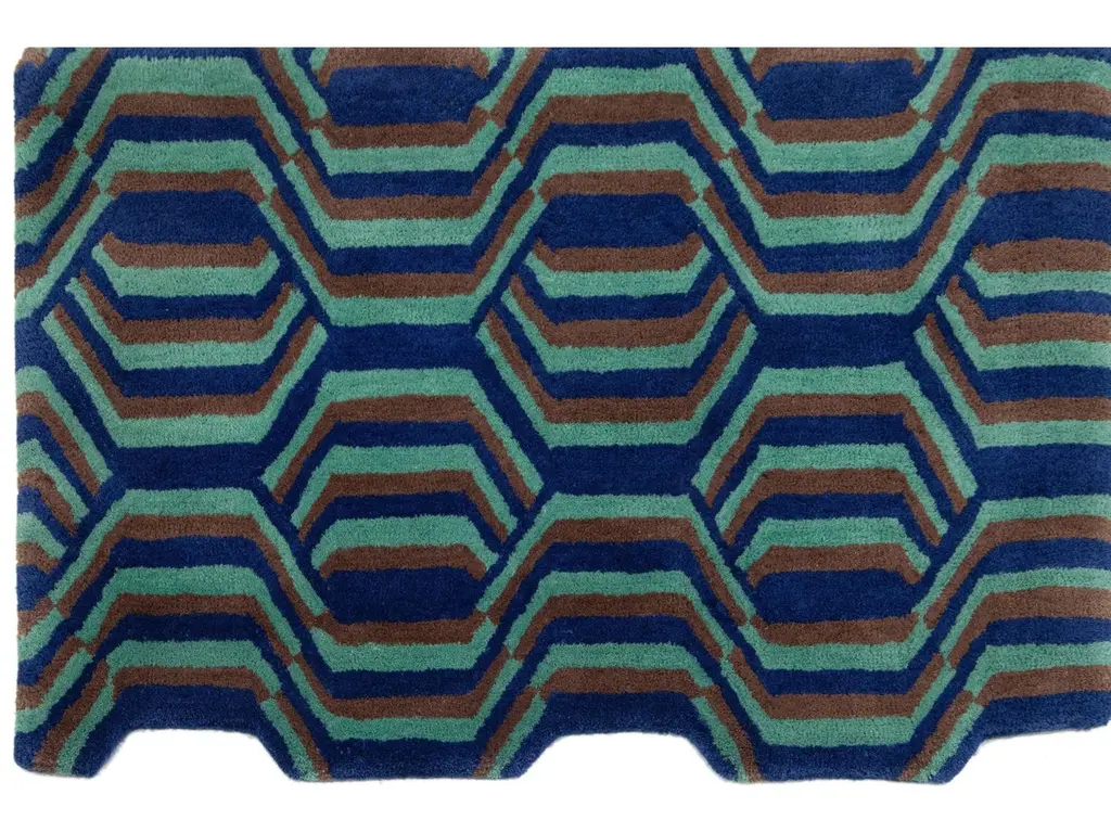 Laura Gottwald for Apadana CollectionOverlapping hexagons create Freestyle’s crisp, quirky graphic pattern.Our rugs are fabricated from virgin Persian wool, hand-dyed in Laura’s bespoke colors, expertly hand-tufted by artisans in Northern India.The price listed is for an 8' x 10' rug. It has an estimated lead time of 15-20 weeks.